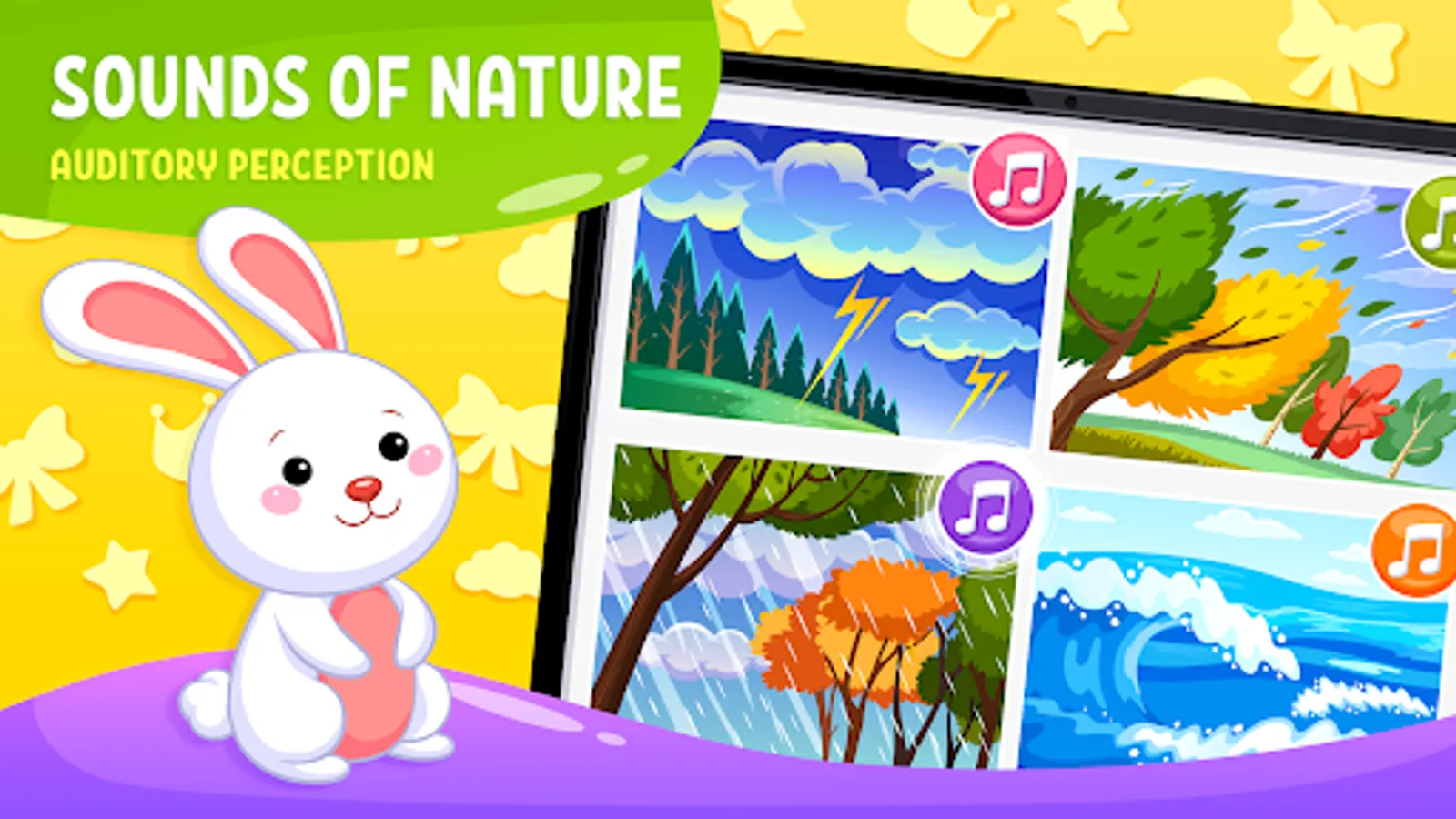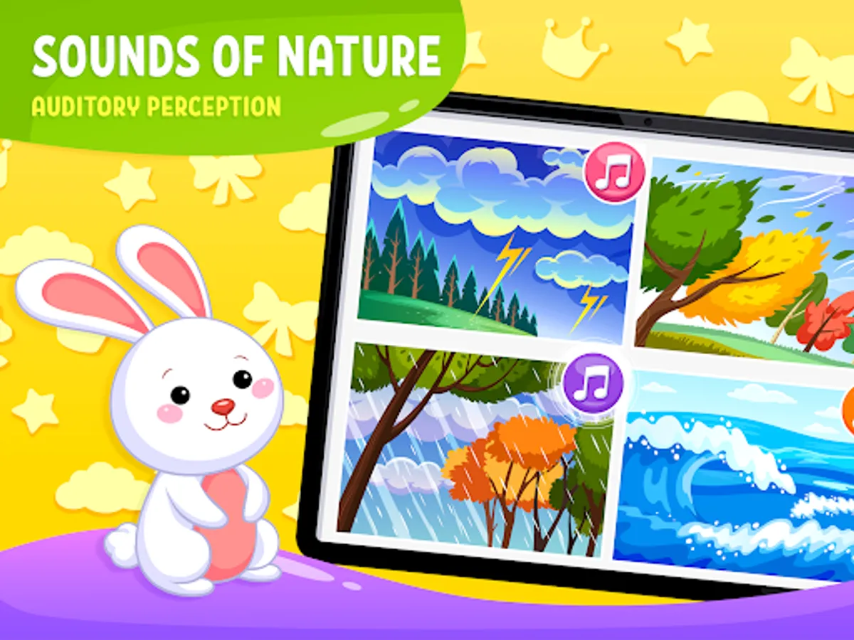 Soft background music will make kids educational games even more fun. You can change the music style in the settings of the toddler games for 3 year olds.