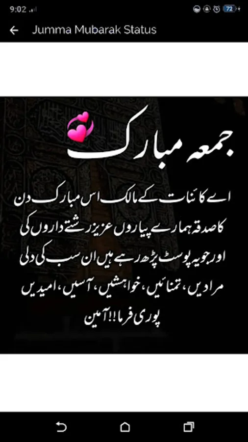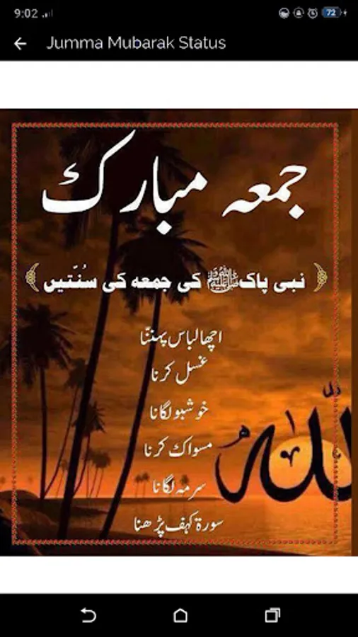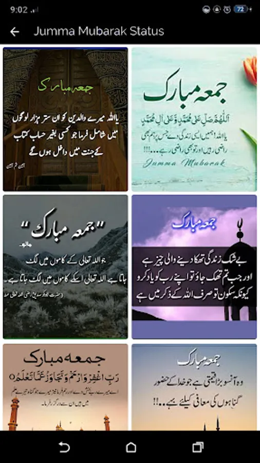 Users can choose from a variety of high-quality images and quotes, including traditional Urdu calligraphy, beautiful landscapes, and inspiring messages that capture the essence of Jumma Mubarak. They can also customize their Jumma Mubarak status by selecting from a range of ready-made messages or by creating their own.