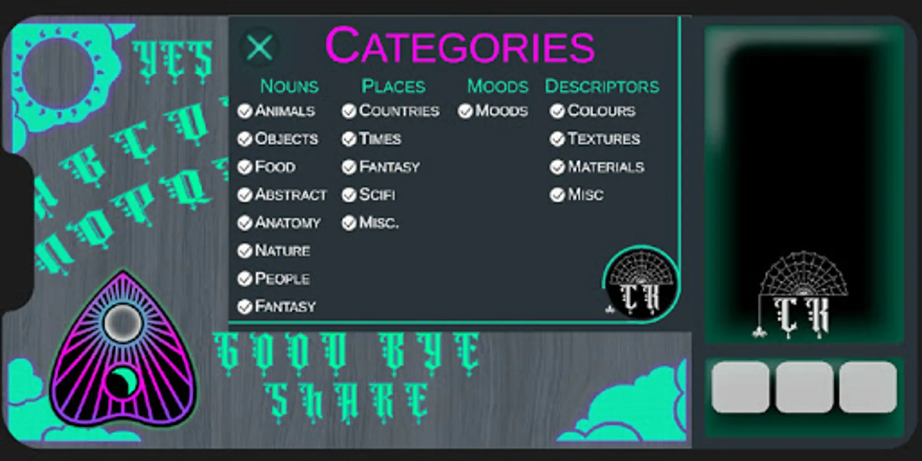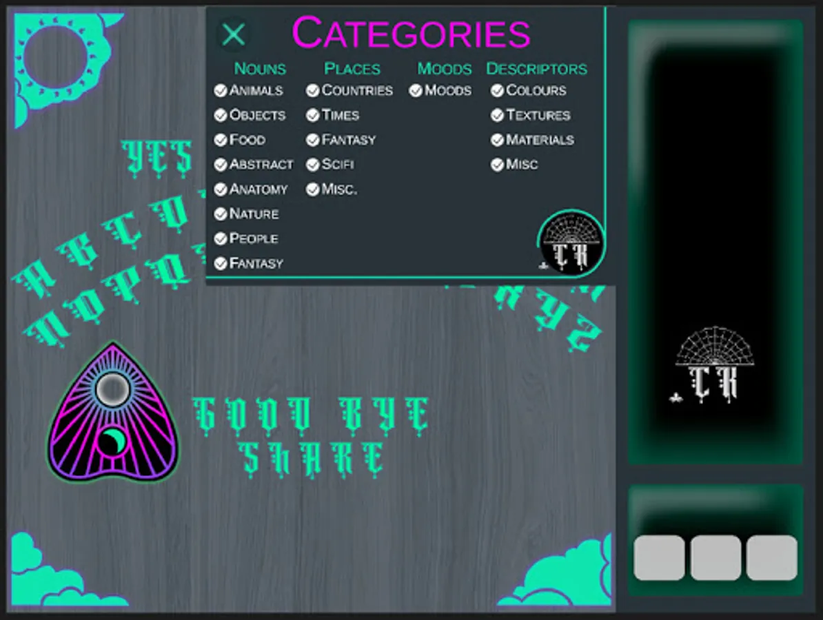 Creative block is no fun for anyone. Ever needed a spark of inspiration, a random burst of imagination to just give you that little boost you need to start creating? That's what Ideas from the Beyond is for.