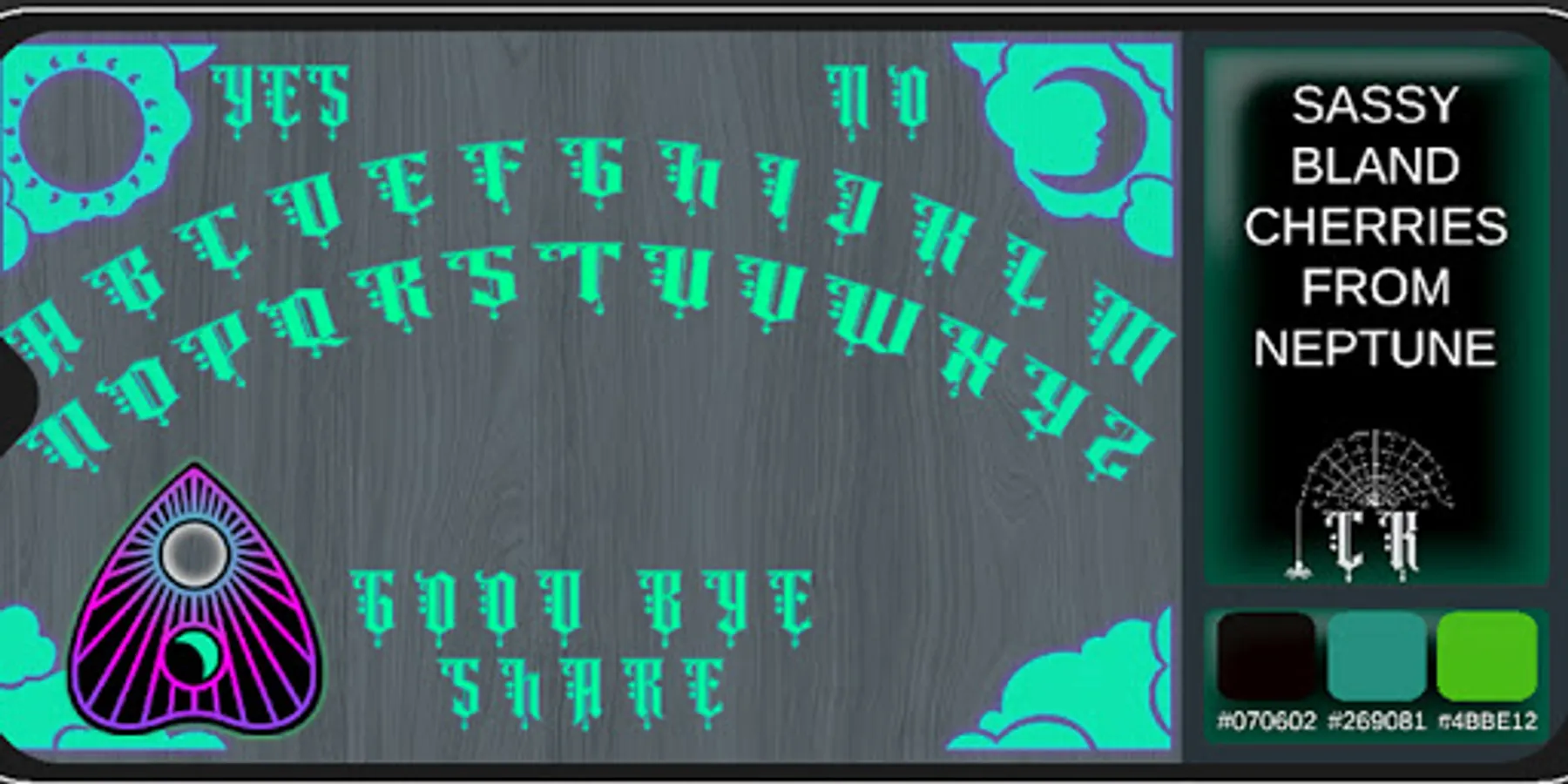 Ideas from the Beyond will create a phrase made up of four categories, and three colours - one dark, one medium and one light - with their hexcodes every time you hit the generate button. You can filter which categories to include in your random phrase, and tailor it to your vision. There are currently over 52 BILLION phrase combinations alone, and we're still adding more!