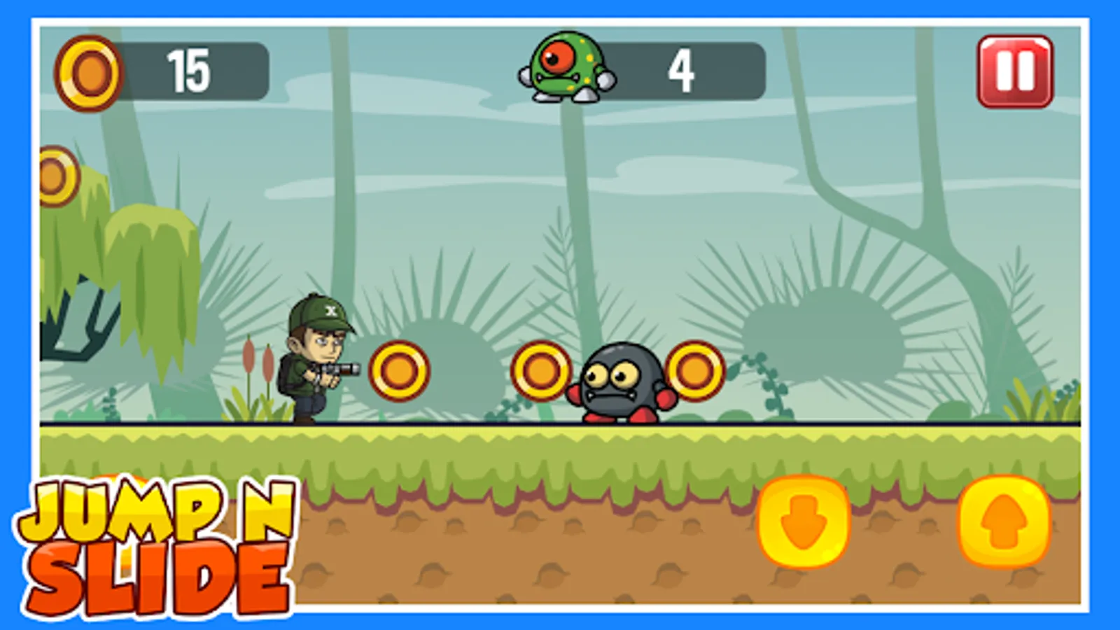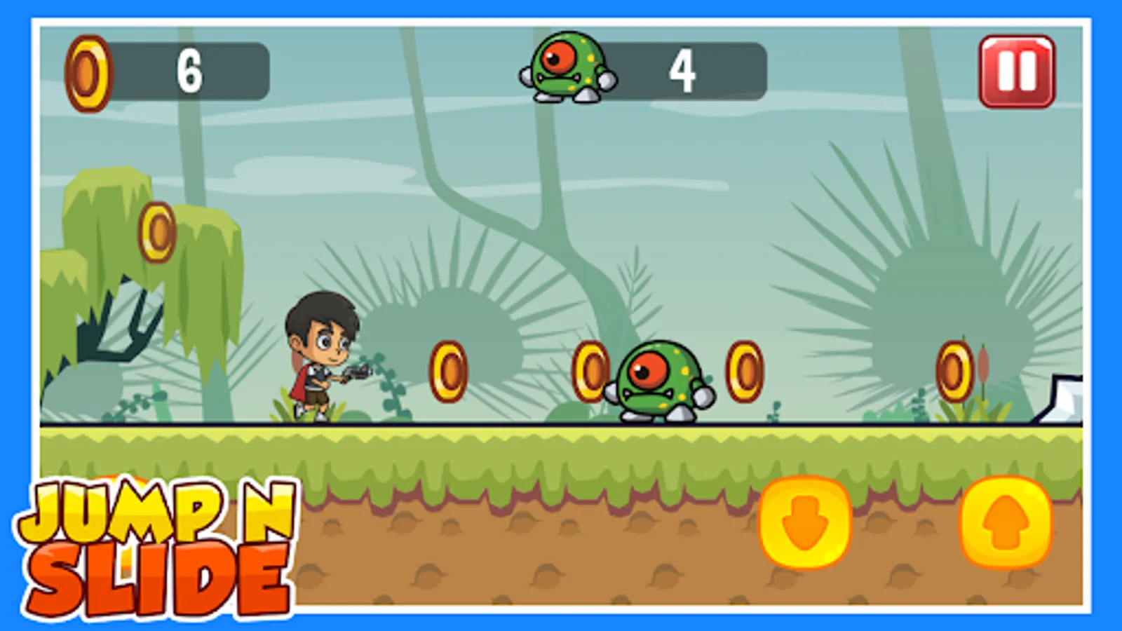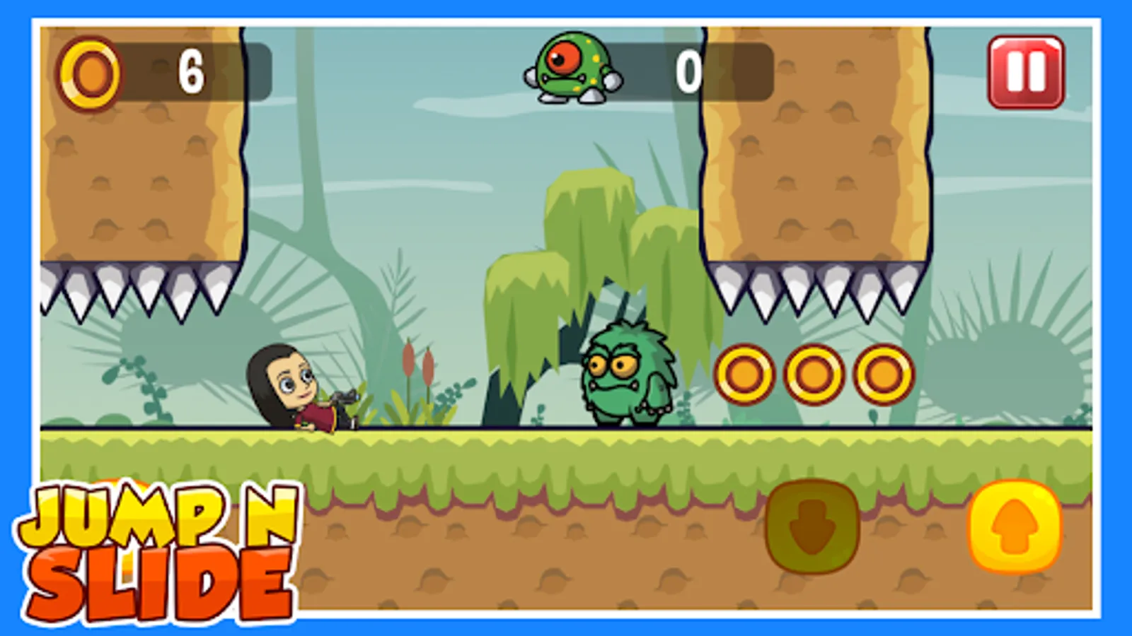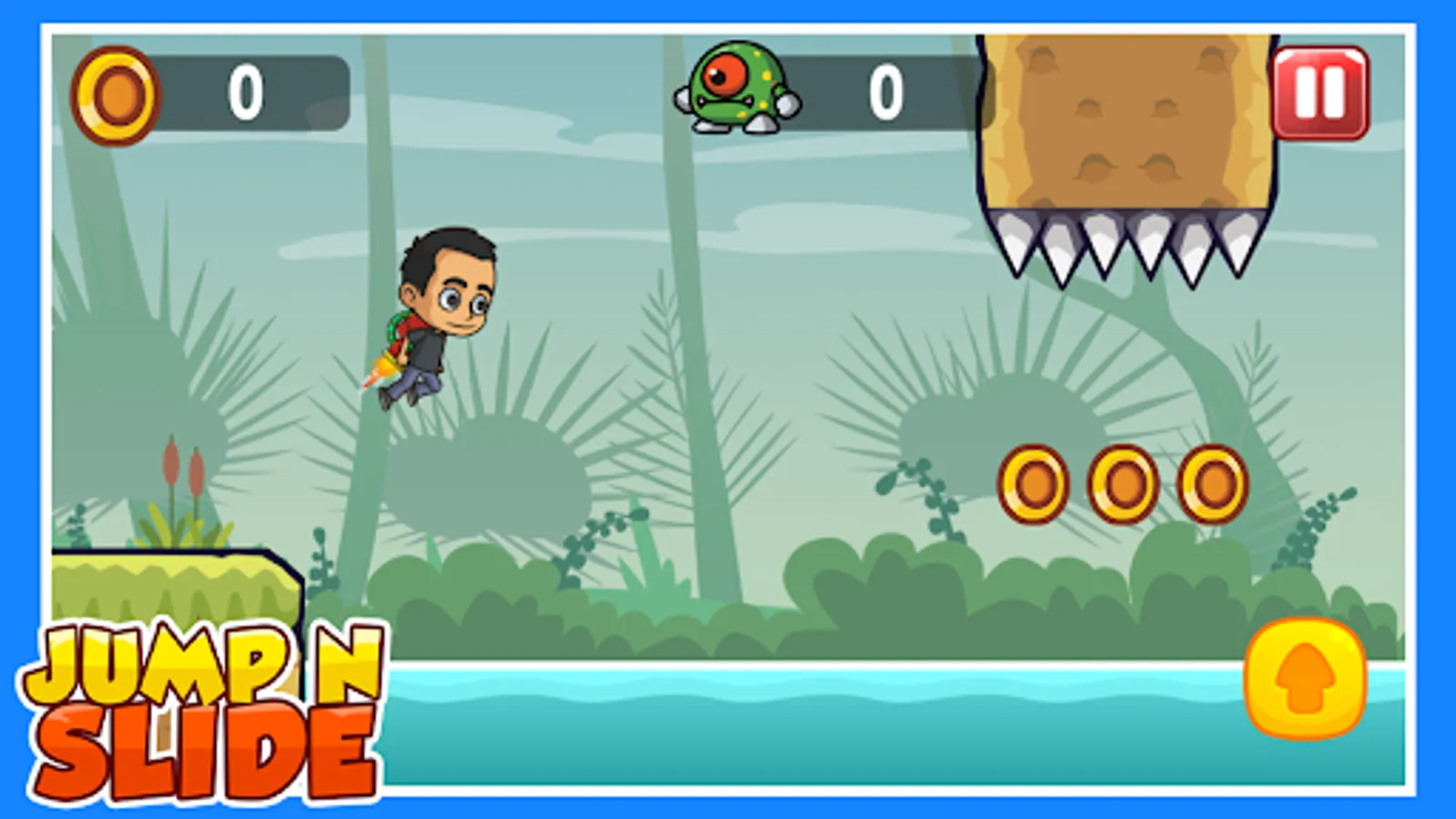 Jump n’ Slide - Swamp Shooter Adventure is a unique adventure game with a non-stop running level, interesting monsters, and lots of sudden obstacles, twists, and turns.