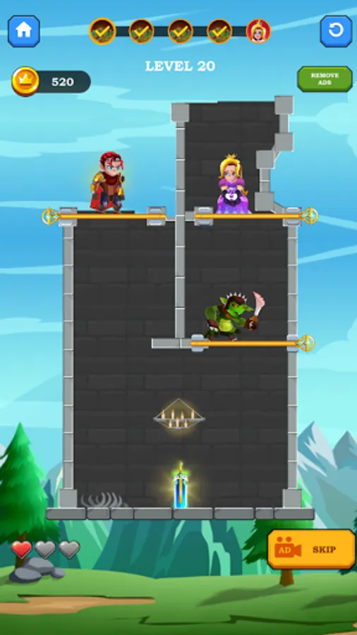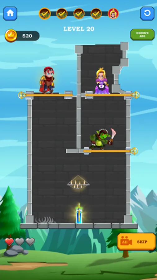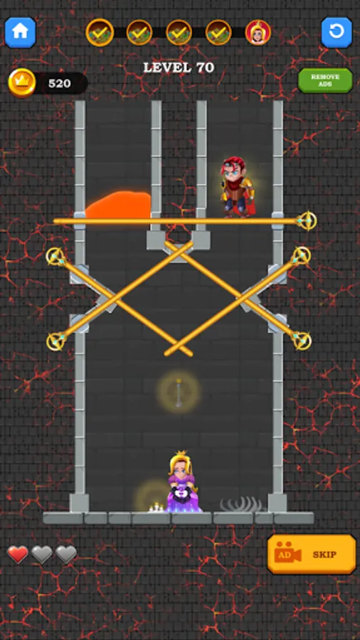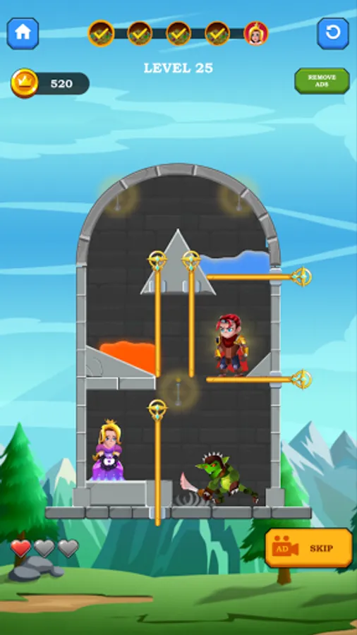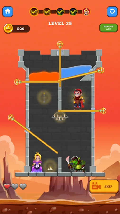 If you enjoy playing brain puzzle games, Solve puzzles and take the treasures by pull the pins. Rescue the princess escape from monsters.
