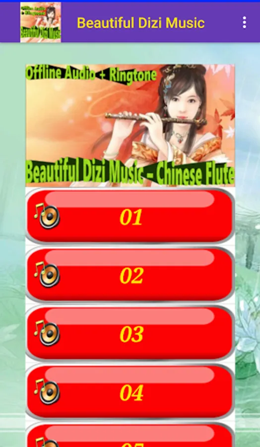 Enjoy the most beautiful Dizi/笛子 (or Chinese Flute music) in quality offline audio with Ringtone feature. This app consists of the most beautiful music which played by using Chinese Flute instrument. Install and enjoy the besto of Chinese music available.