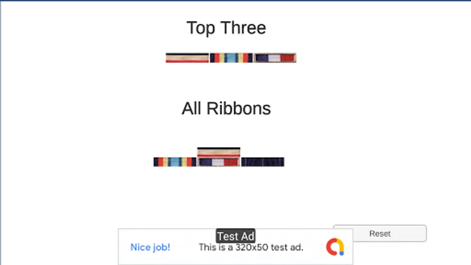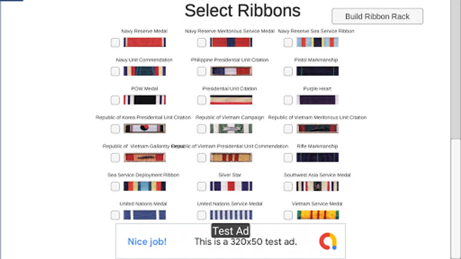 Displays the correct way to wear ribbons and awards. Displays your ribbons and medals in order of preference as determined by navy uniform regulations. Shows options for wearing all ribbons as well as only your top three.