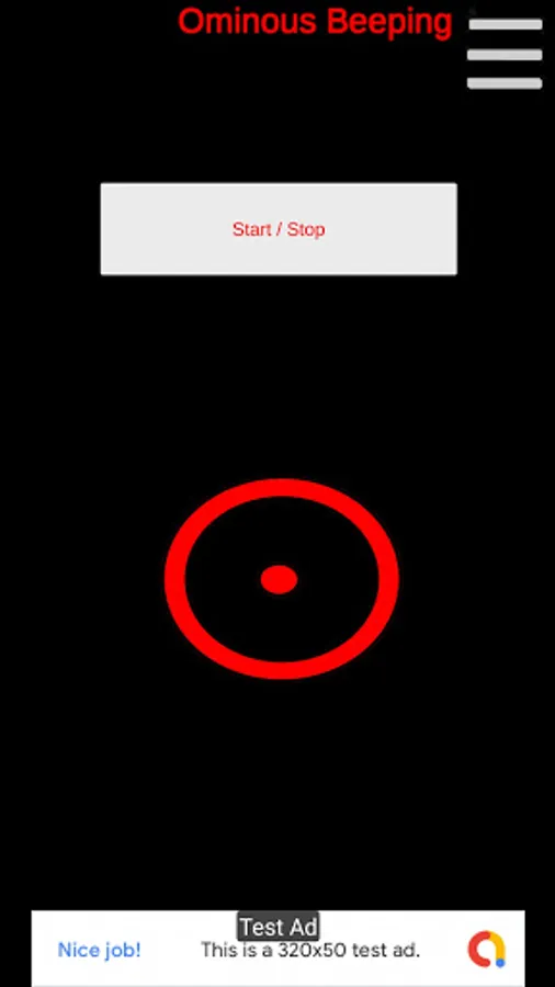 An ominous beeping app where the user can determine the rate of change in sound frequency, initial spacing of beeps, and what (if any) sound is played when beeps are too close together.