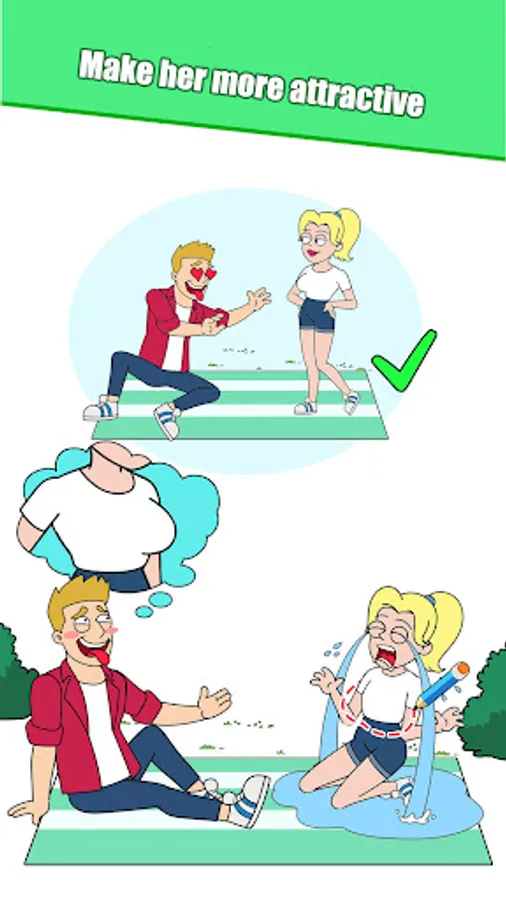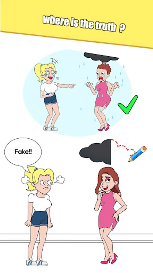 Draw Hafl is a great mind-challenging but funny and creative game that will make your day happier. Test your brain and drawing skills by guessing the missing part of the drawing and completing it.