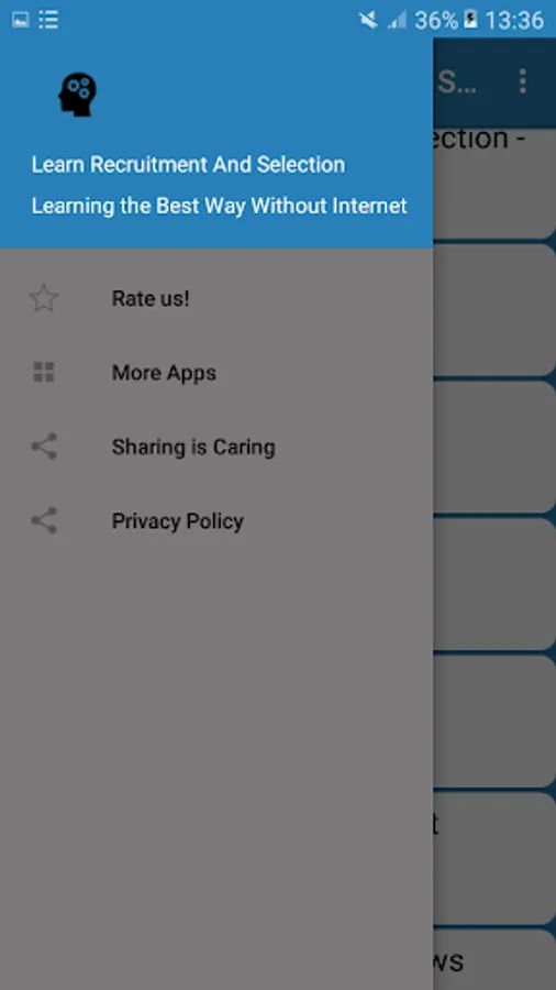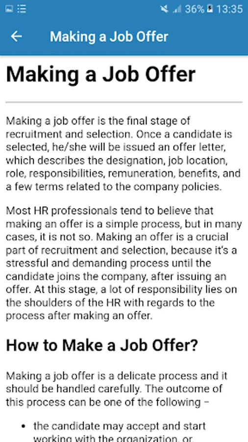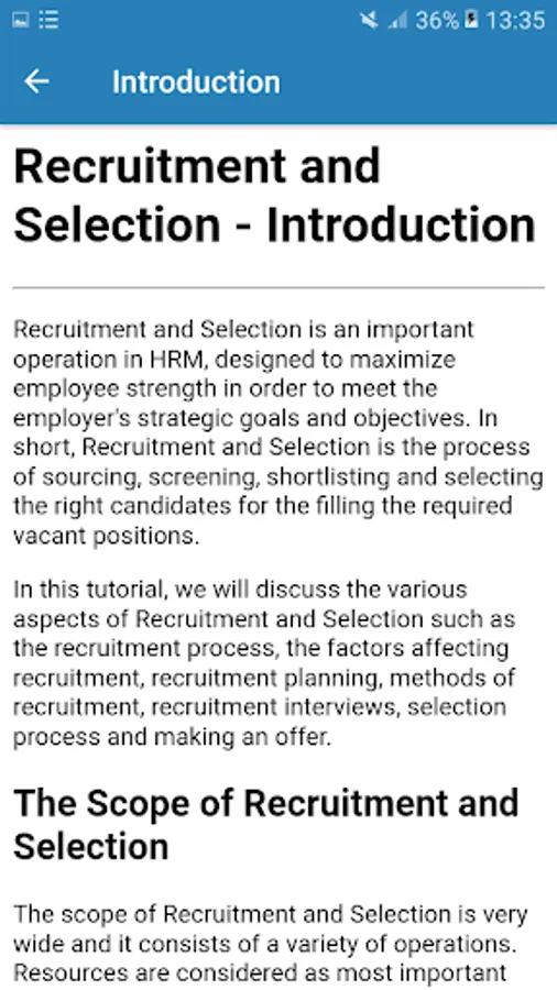 With this App you don't need internet connection to read and learn about Recruitment And Selection concept.