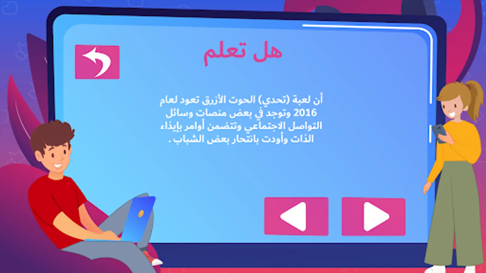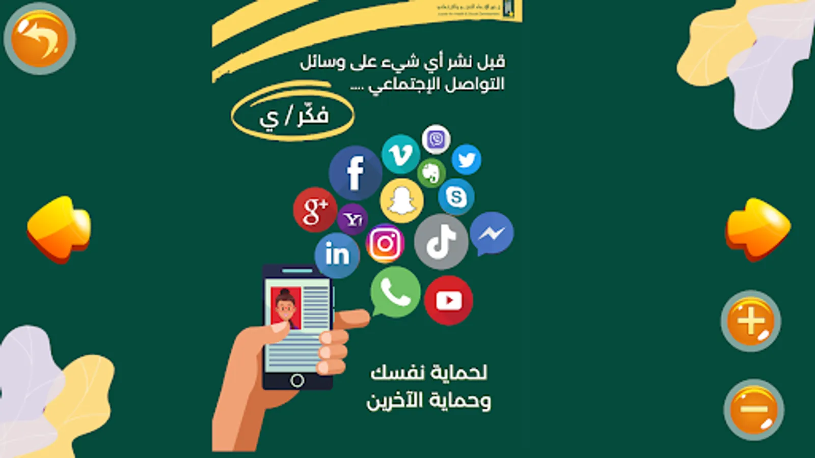 Among these educational means: An electronic game suitable for the age group above 13 years old to educate adolescents about safety and security via the Internet. Also, the application includes videos as a fun way to communicate information related to the same topic and other means that will provide useful information for them and the family.