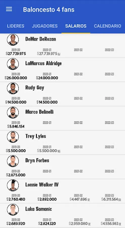-List of all salaries a player has received