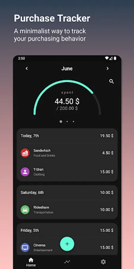 Purchase Tracker is a minimalistic app to track your personal expenses. It helps you keep track of what you buy with a beautiful and simple interface. Just a few clicks and your purchases are added!