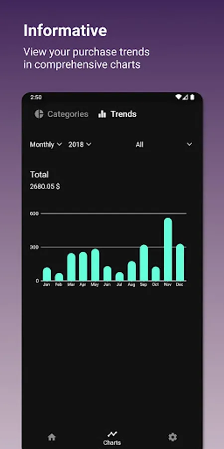 • Check your performance in easy-to-read, interactive charts and gain insight into your spending habits