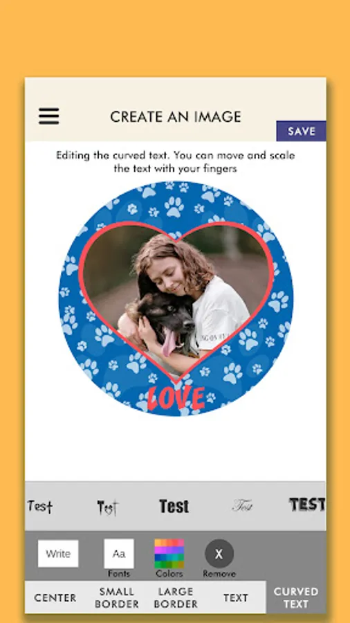 Design images for your social medias, bottle caps crafts and more with your own pictures, premade designs or patterns and your own text.