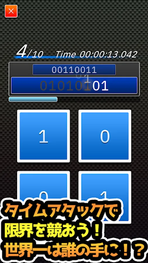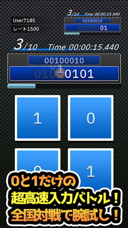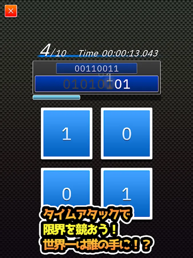 All you have to do is quickly enter the 0s and 1s displayed on the screen in order with the keyboard below!
