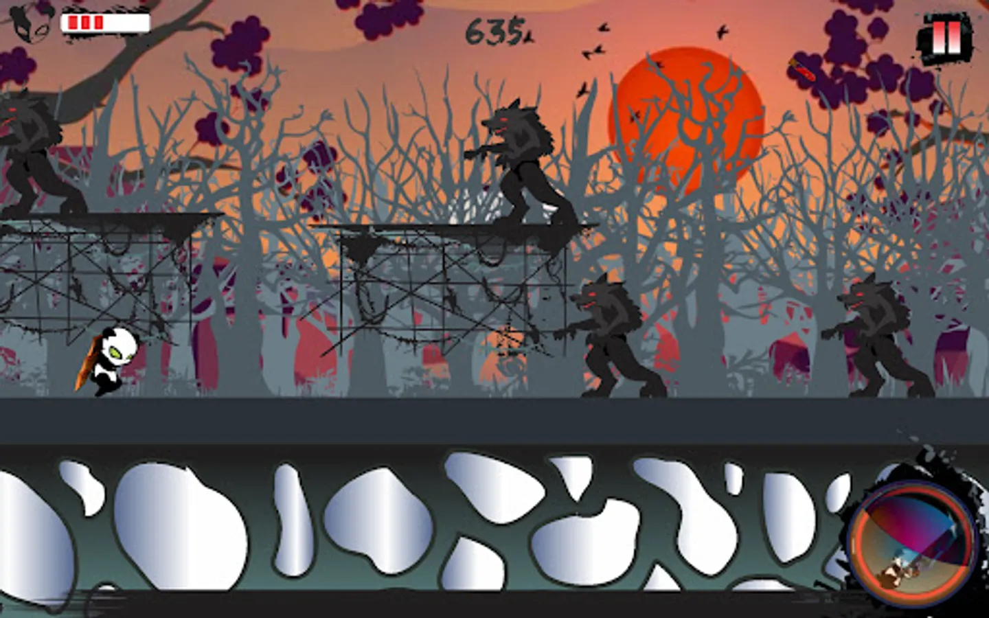 Move and control panda by jumping while avoiding collision with the wolf with arrow, escape the wolf as warrior as long as you can to gain more points. Have a funny