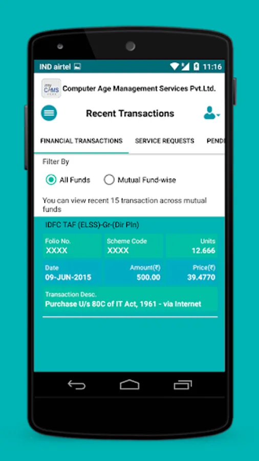 myCAMS brings a host of features - get a one view of your MF portfolio, open new folios, purchase, redeem, switch, set up SIP and more. The app facilitates faster, easier and smarter ways to transact in Mutual Funds.