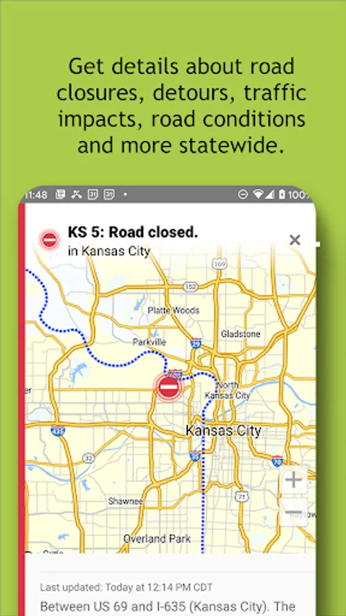 The KanDrive app is the Kansas Department of Transportation's official traffic and traveler information app. The new KanDrive app provides up-to-date traffic information for interstates, U.S. routes and state highways across Kansas.