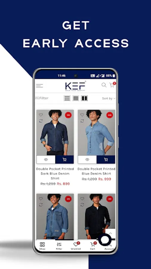 You can now easily manage your wardrobe with KEF Clothing. Install our app to get exclusive offers while shopping for your favorite clothes. We sell premium quality shirts, tees, jeans, pants, shorts along with all the accessories you need to keep up with the fashion game, such as belts, ties, wallets, etc. You can expect exclusive offers and discounts during all seasons.
