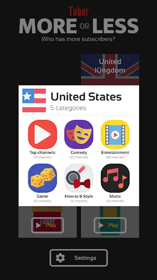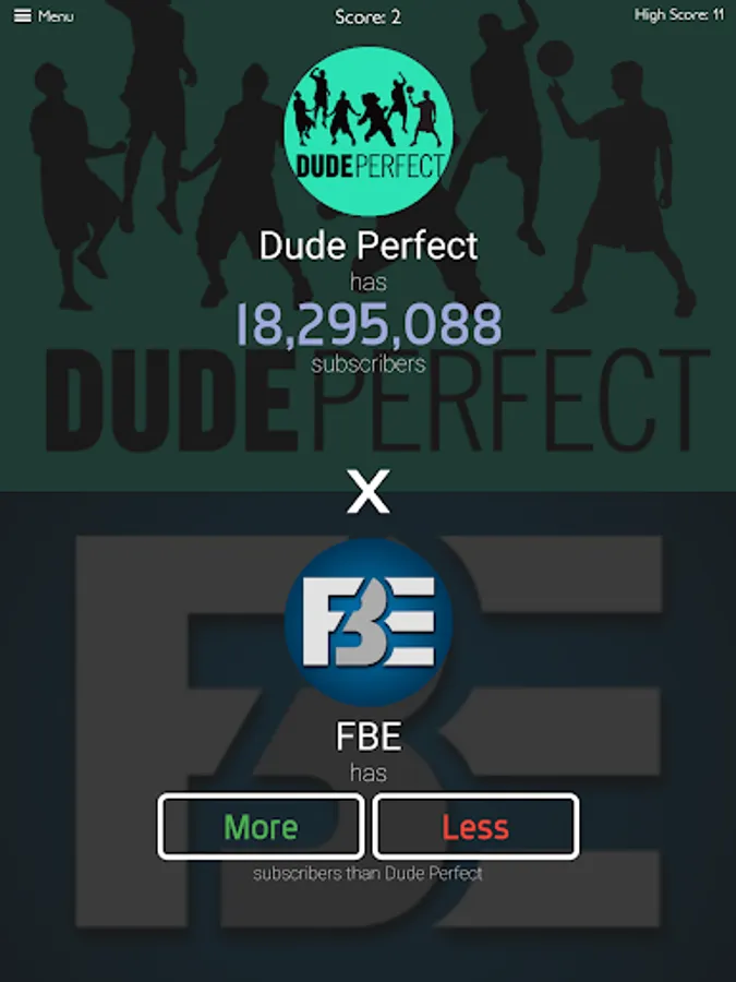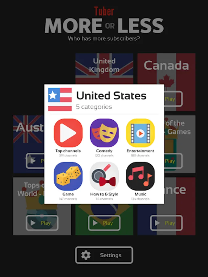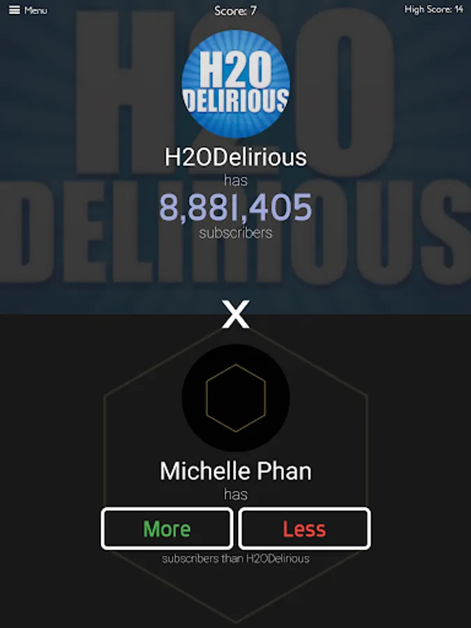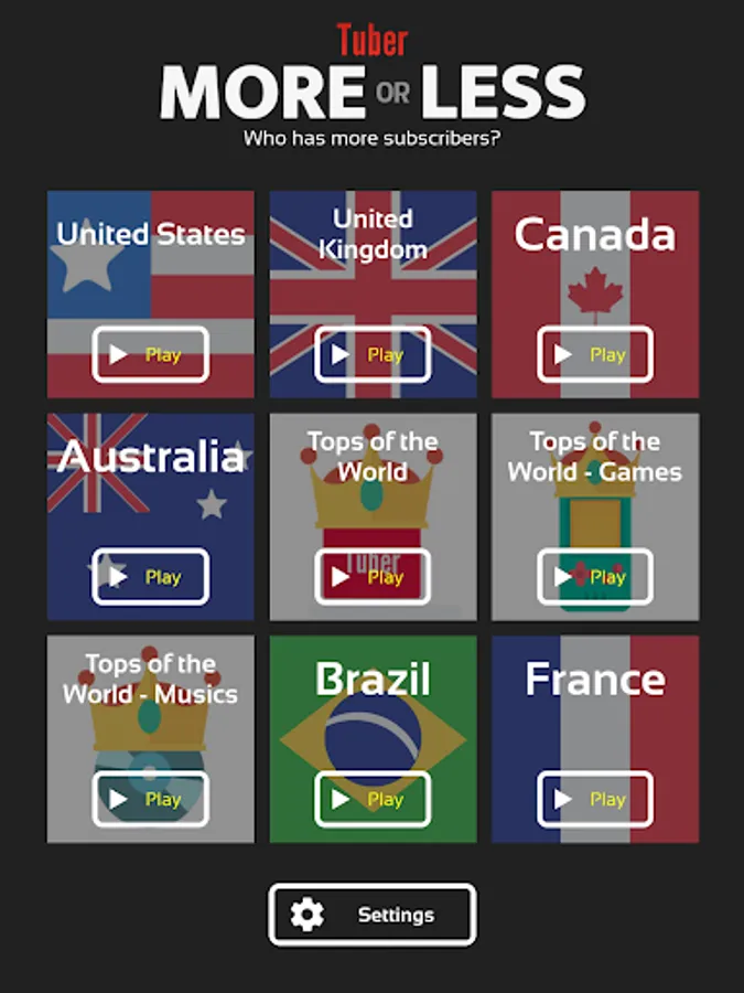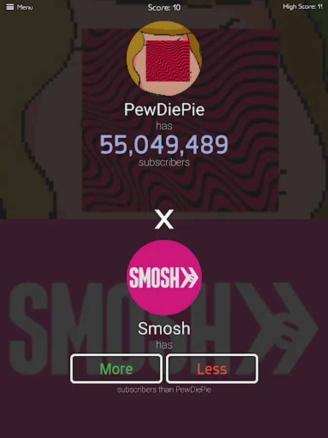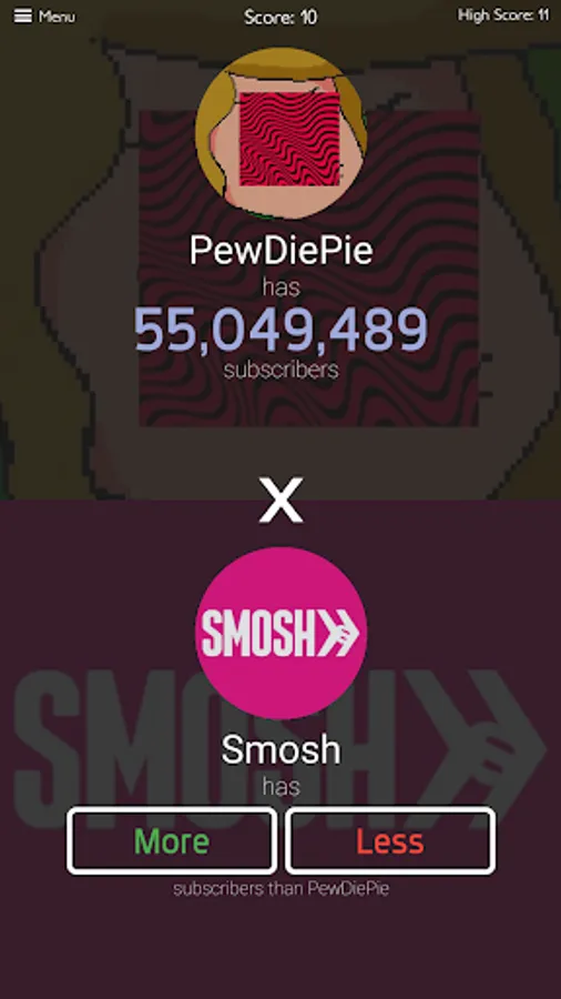If you are addicted to trivia games, then you will instantly get hooked to this addictive Tuber subscribers game! You will have to take a quiz about the number of subscribers of some channels and you need to prove that you are a real Tuber’s fan by answering all questions of this new quiz game. And the best thing is that there are over 3000 channels from many countries and you will have to predict if they have higher or lower number of subscribers by selecting more or less, so you will have a great opportunity to enjoy playing our tuber subscribers trivia game for hours non stop! Sound easy, but can you really do it and find the right answer for each channel in this amazing trivia game?