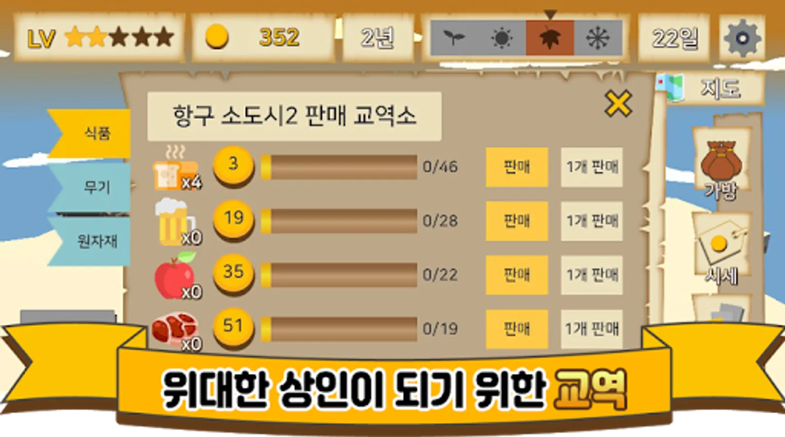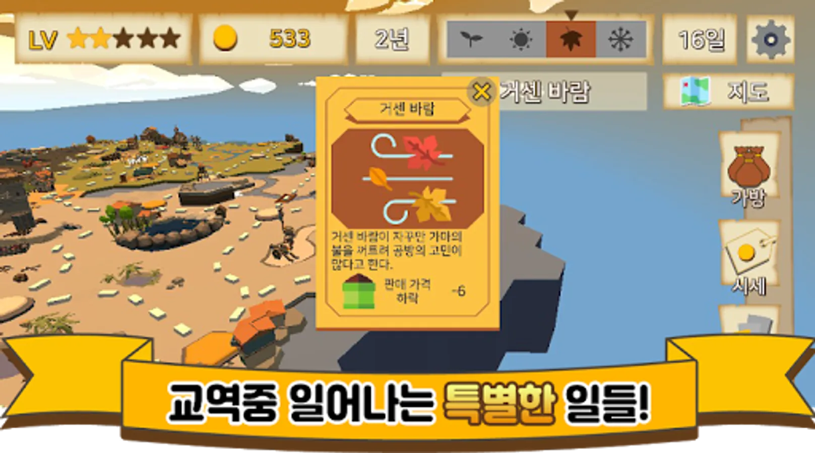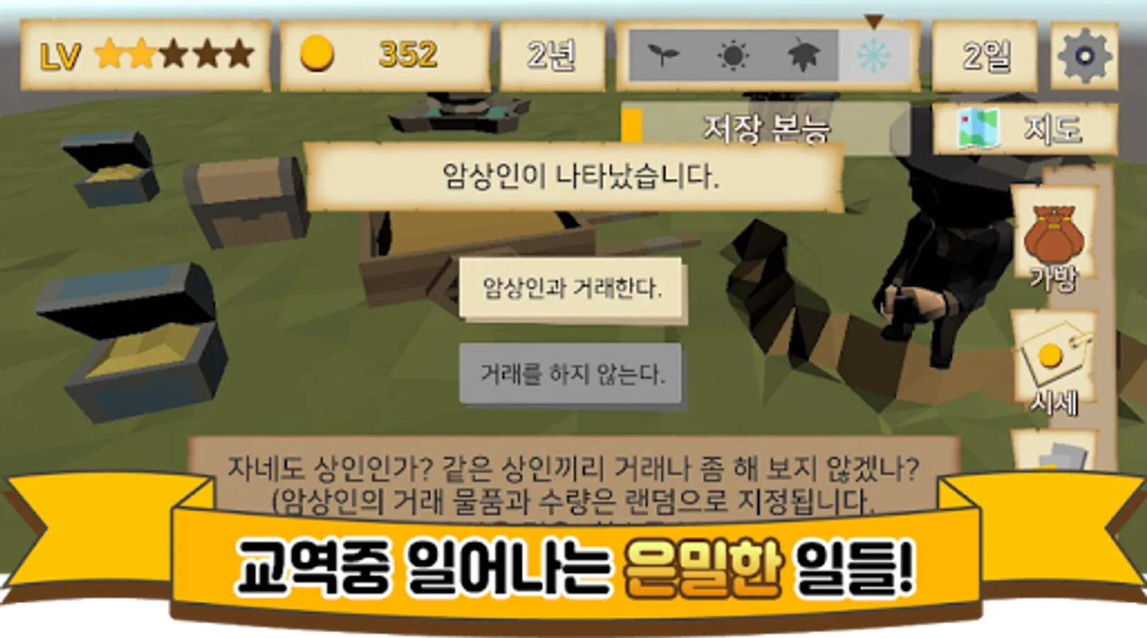 It is a game that travels to become a great merchant. Let's face the risks and make more gold.