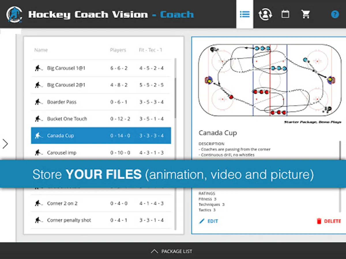 Get drills from pro coaches from all over the hockey world (on our website you can buy these packages to unlock them in the app).