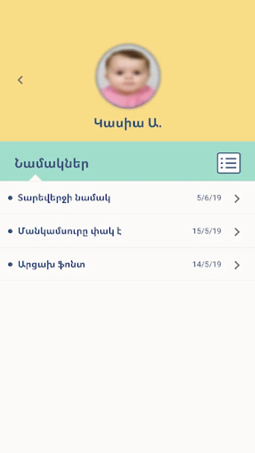 Arslanian Nursery is a mobile app designed to facilitate information-sharing between Djemaran’s Raffi & Anelga Arslanian Nursery and the parents of enrolled children. The nursery’s caregivers use this app to periodically update children’s daily activities within the nursery (such as eating, sleeping, toilet use, etc.). Parents get notified in real time about their children’s activities. Each child’s account is password-protected and can be accessed only by his/her parents with previously provided credentials.