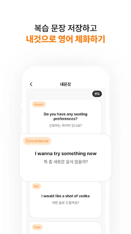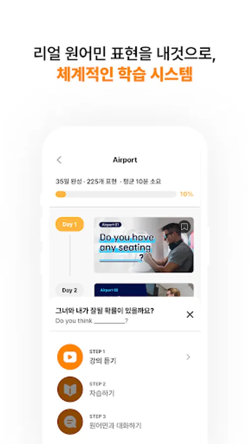 In self-study, you can review in a fun way in the form of various quizzes such as reviewing words in the lecture, listing sentences, and filling in blanks. So you can practice conversation with a high level of immersion.
