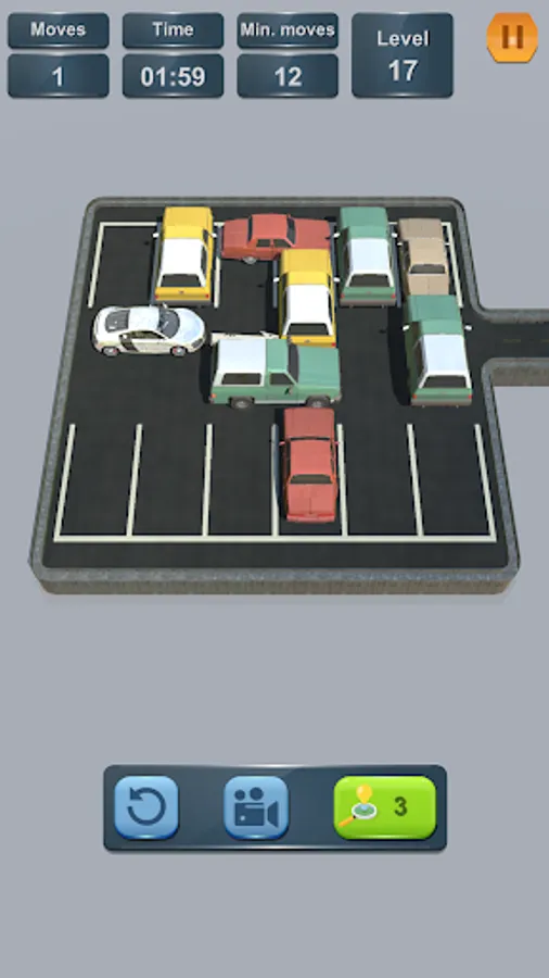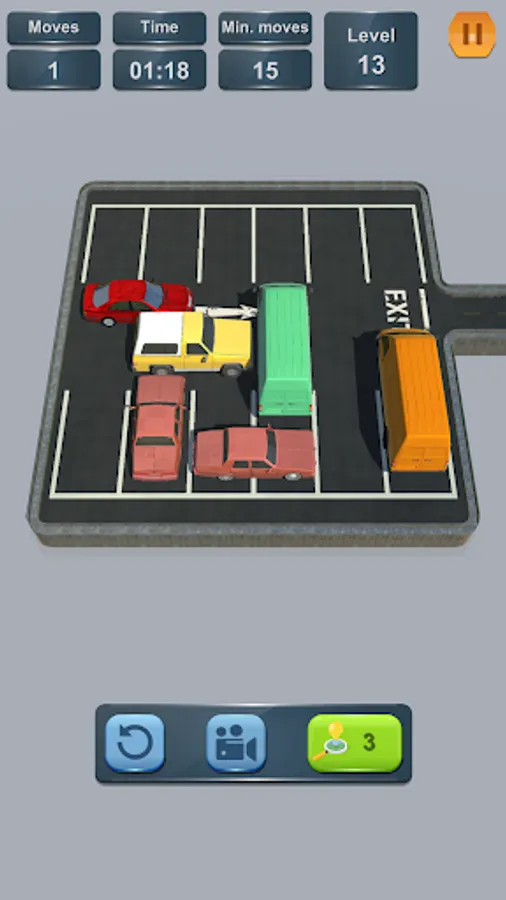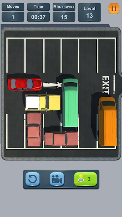 Get out of the parking lot by clearing the path and solving the puzzle.