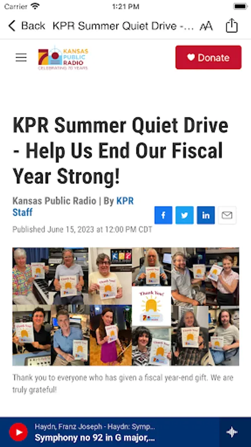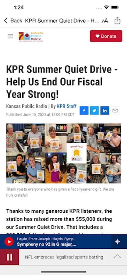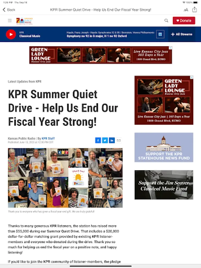 • The Kansas Public Radio App displays the web page associated with the program or program segment you are listening to On Demand so you can explore for more information.
