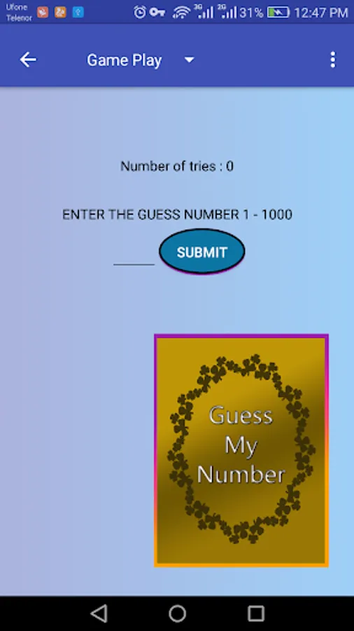 This is just a game. User guess the hidden number. The game is a package of beautiful interface and back sound effects.