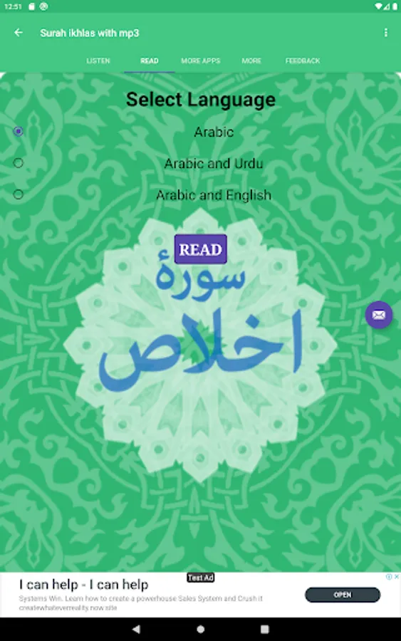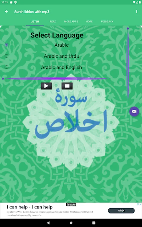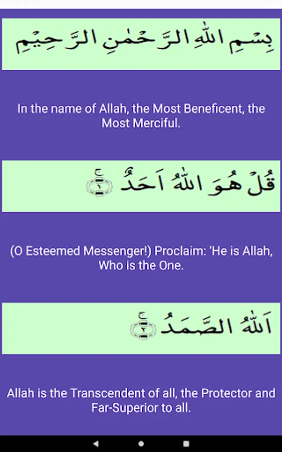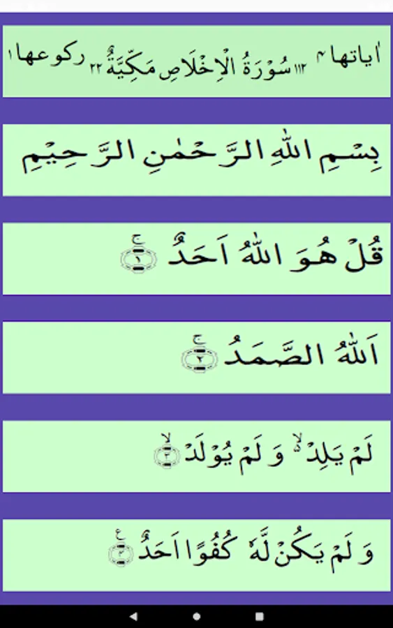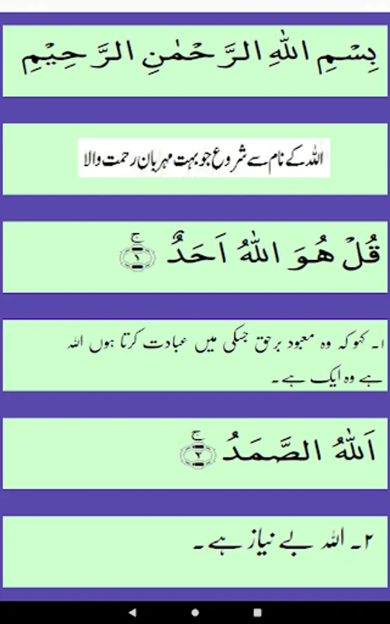 • It includes video/ mp4, audio/mp3 and written text of Surah Ikhlas along with the translation /tarjuma– available in both English and Urdu.