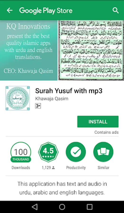 Surah Yusuf with mp3 is a unique application by KQ innovations, made to fulfill your wants and give you the best experience while using an app.