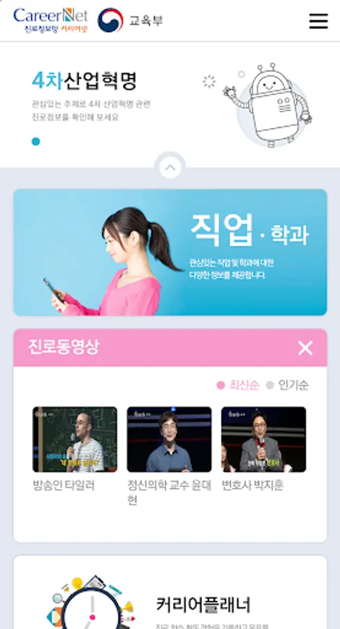 3. 직업·학과정보 : 진로계획 및 진로결정에 유용한 직업정보, 학과정보를 제공 합니다.