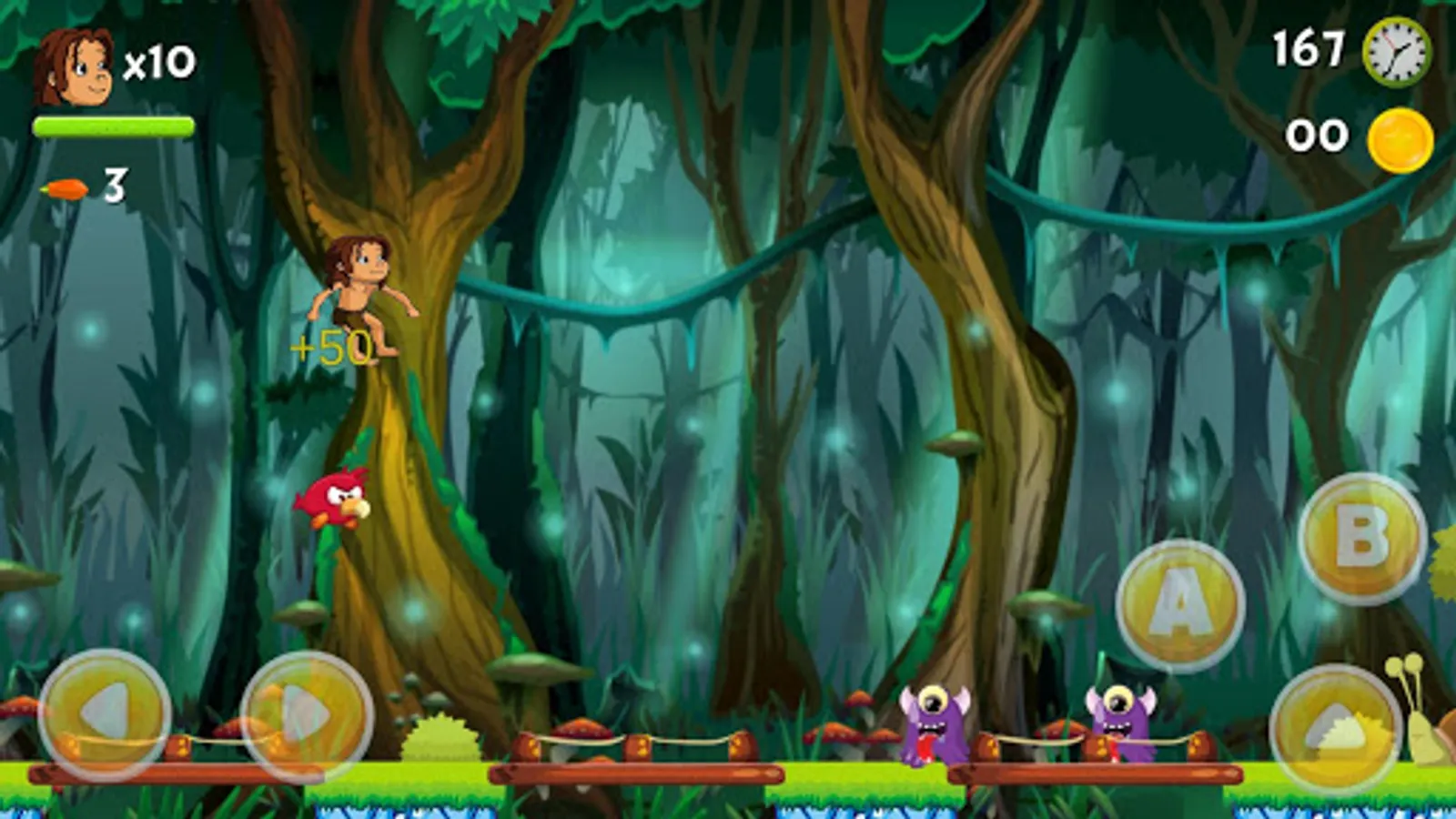 Life in the jungle can be hard; you’ll have to run, jump, swing, dash, and bounce to be able to pass trough several scenarios. Explore all the caves and treetops as you might find collectables to unlock, or great power-ups.
