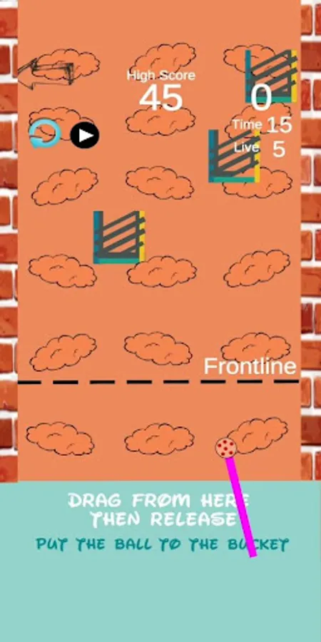 This game is a game about balls being shot. With drag on the screen, you can aim where the ball will slide according to the direction. Release the touch so the ball can slide. The ball must fit right into the moving container. You have to do it quickly because there is time going on. If the ball makes it into the container, time will increase.