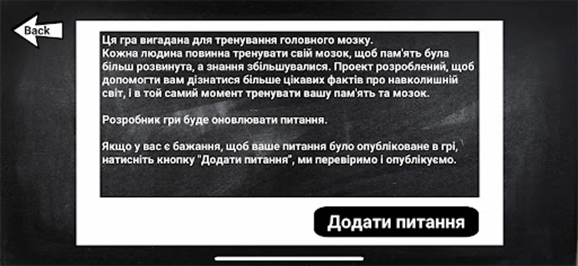 The project is designed to help you learn more interesting facts about the world around you, and at the same time train your memory and brain.