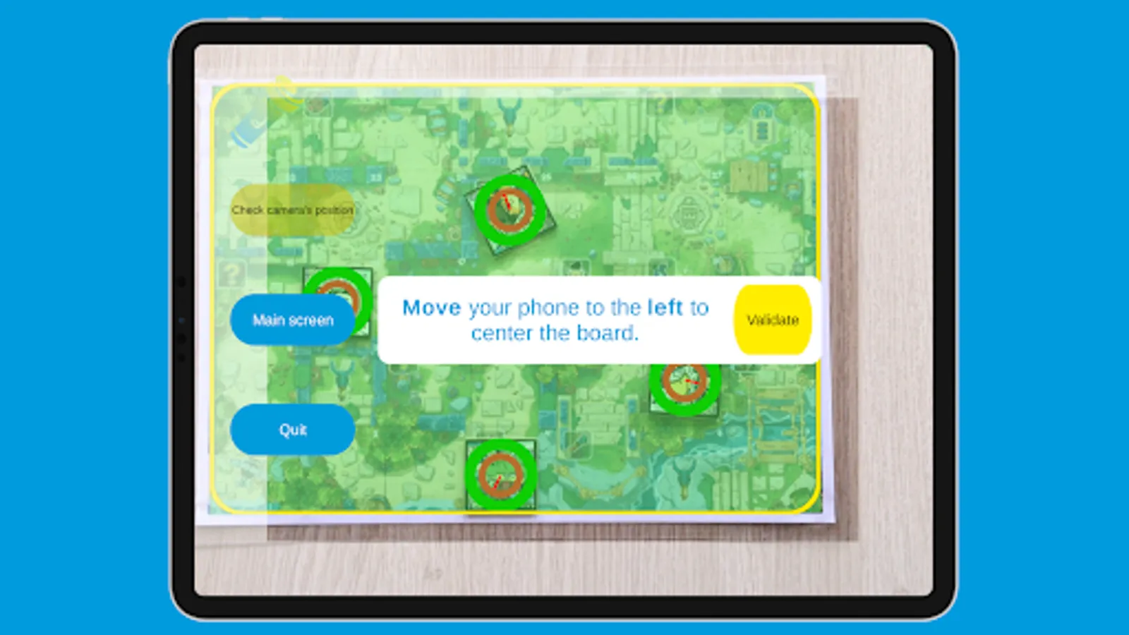 Thanks to this application, you control the video game by interacting with the game’s physical elements (board and pawns) : the board game comes to life!