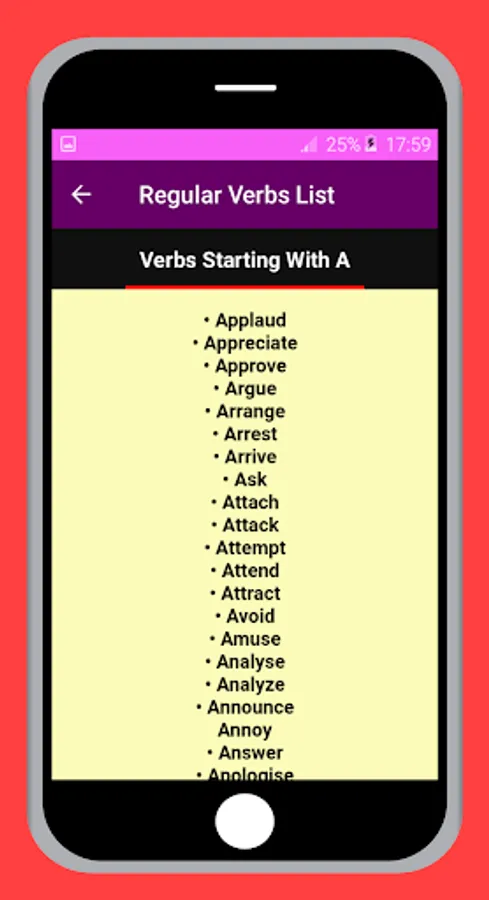 Learning english regular verbs list from A to Z the app is wonderful and very rich for the student and the beginner and advanced to learn all regular verbs in english the app is includes all regular verbs .
