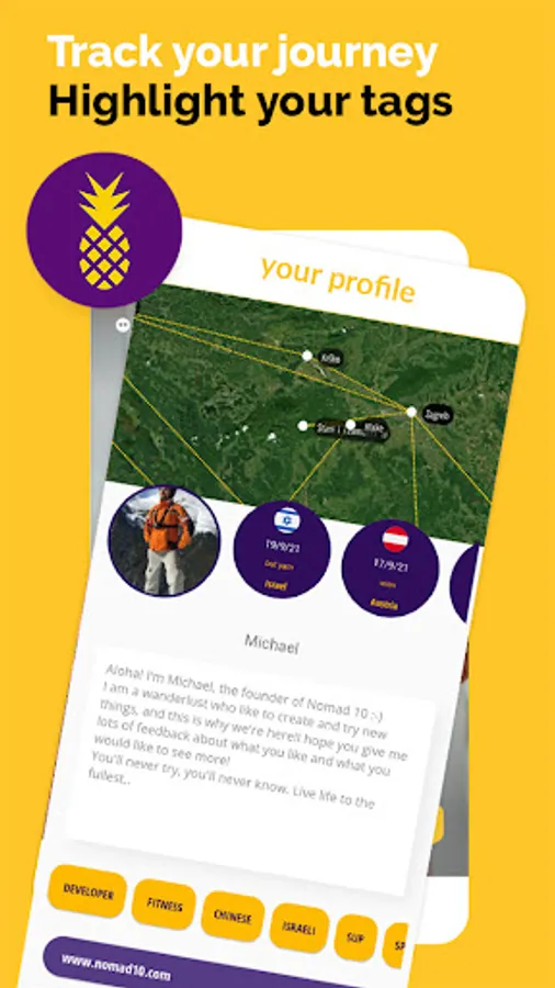 Share your interests, remote work profession and passions using the profile tags, which will make it easy for the digital nomads community in the list to connect with you on a professional or friendly basis.