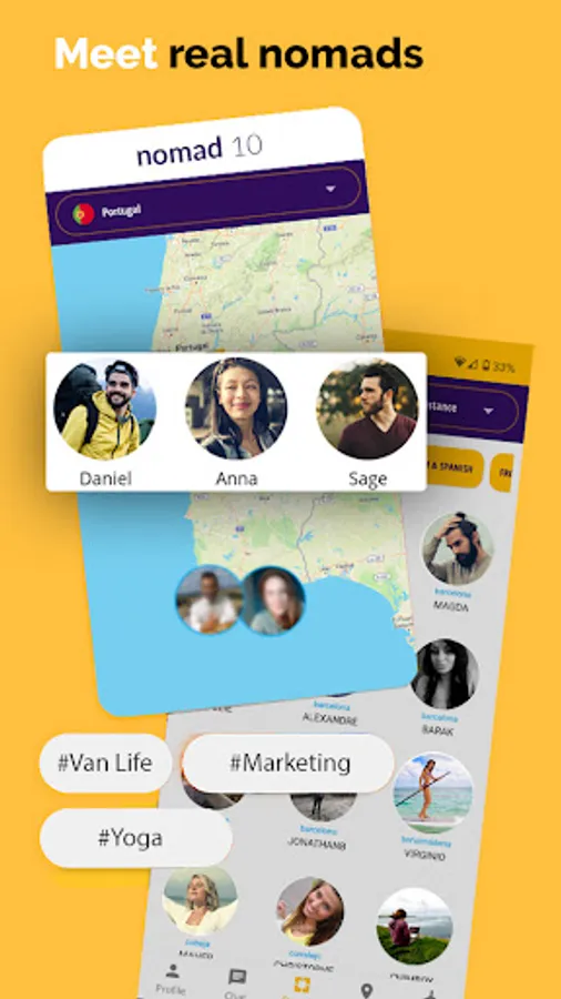 Find the nomad soulmates that match your interests and destination, and lifestyle and travel along.