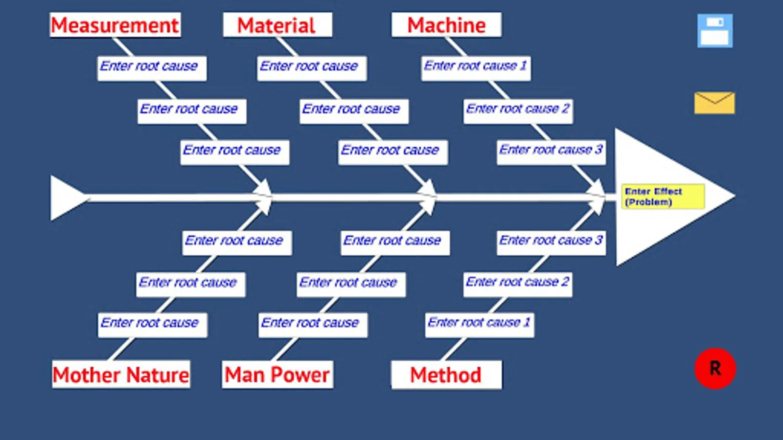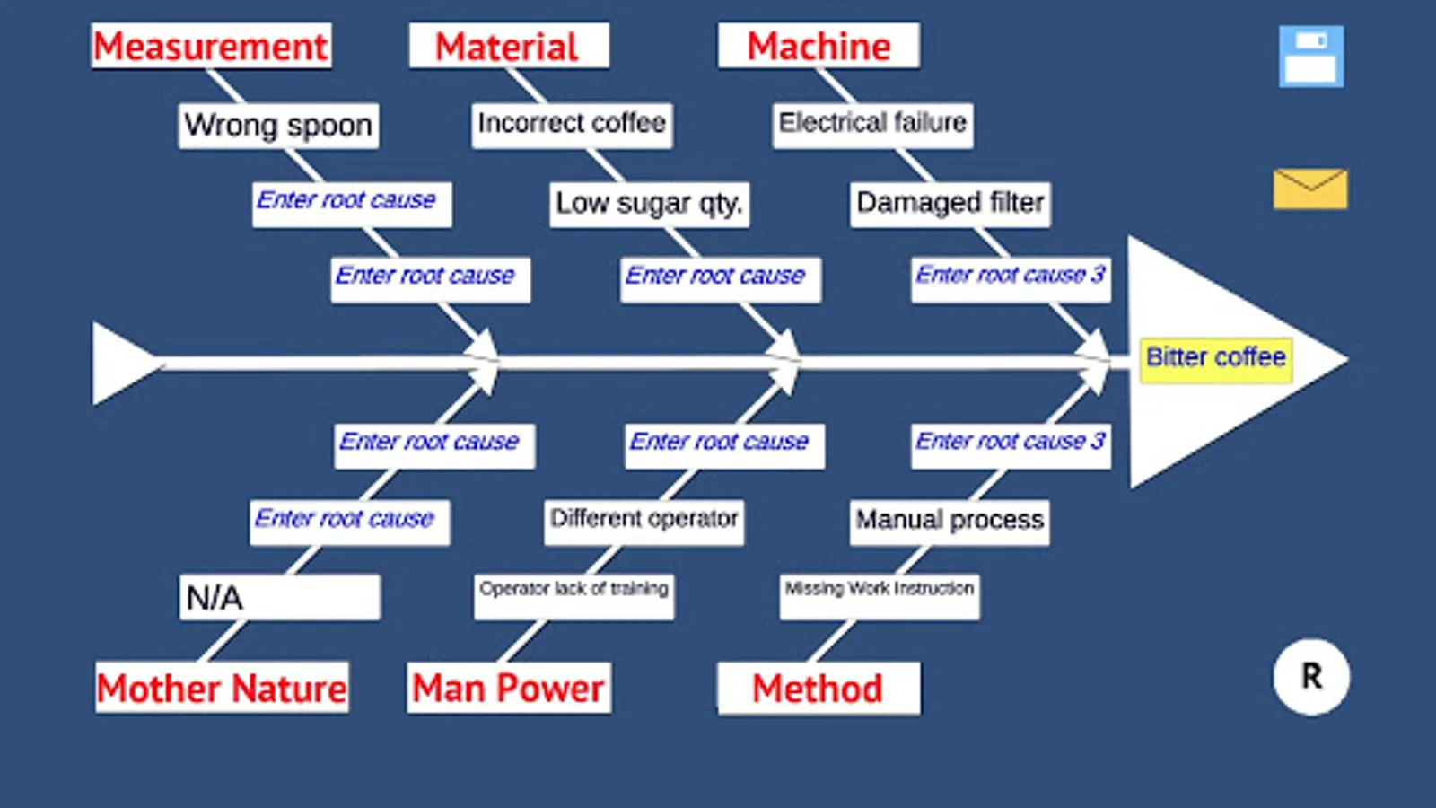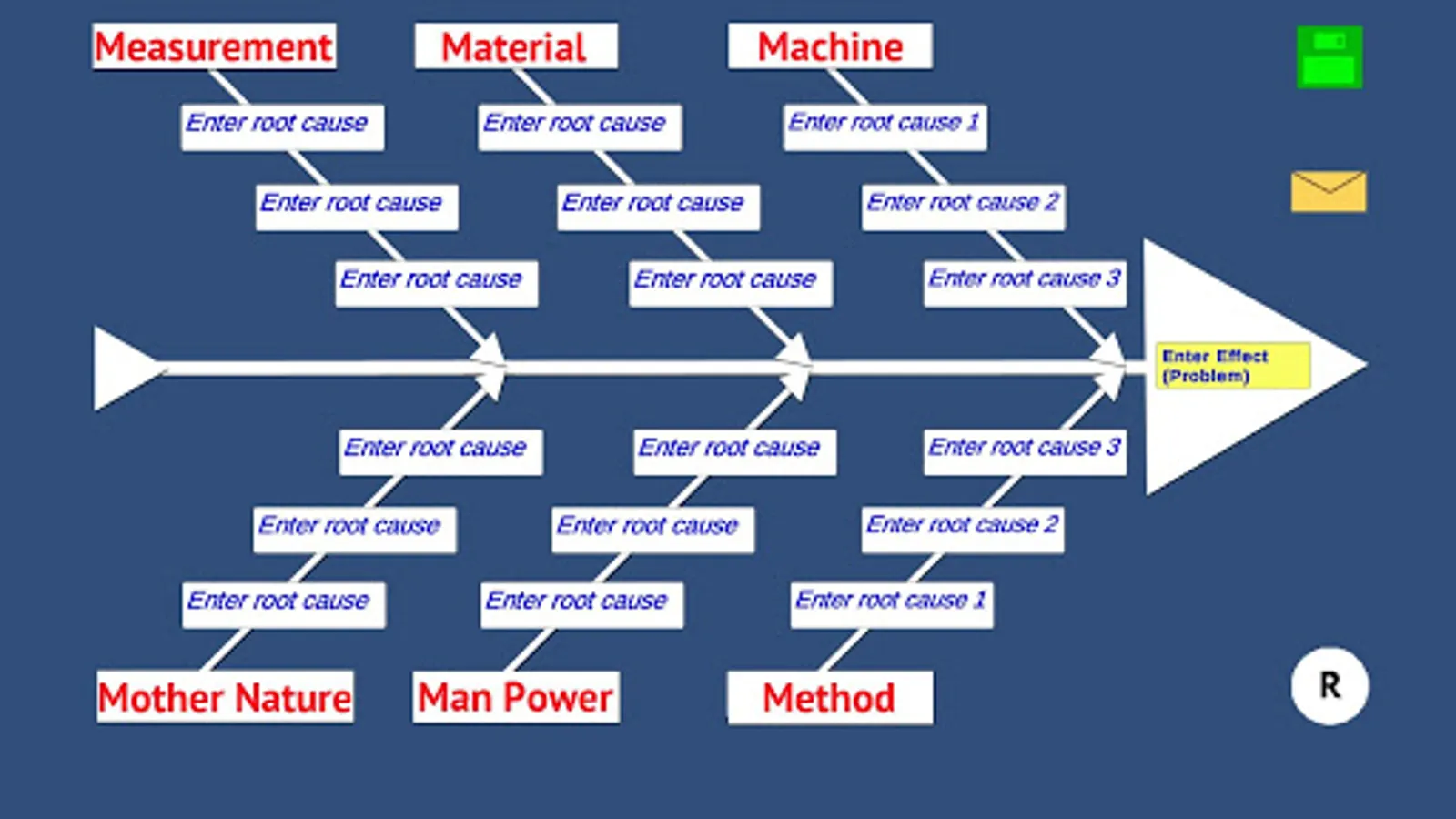 Ishikawa Analysis is a productivity app to help you to develop fishbone diagrams and share them by e-mail. You can save your progress and then continuous working on the pending analysis later, once that you and your team are completed the Ishikawa you will be able to share it by e-mail, the only thing that you need to do is looking for the file "Ishikawa.png" to attach it to the body e-mail.