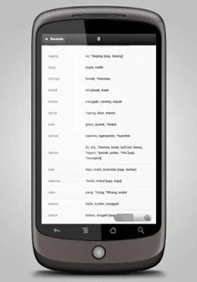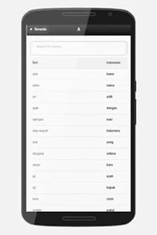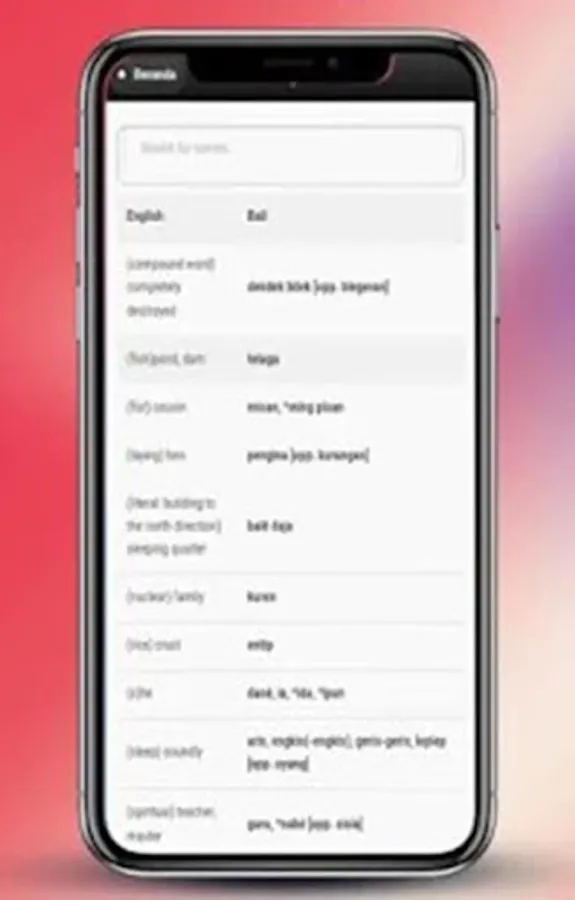 In this Balinese language dictionary application, word translations are displayed ranging from Indonesian to Balinese translations and vice versa and also English to Balinese translations.