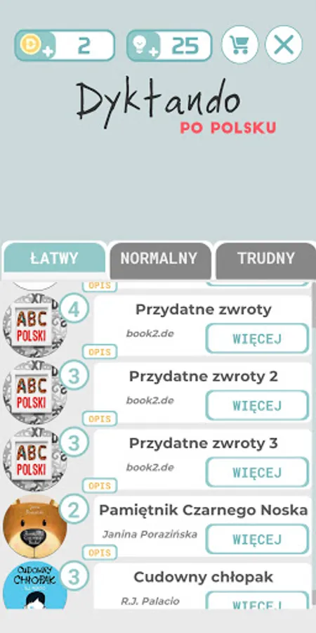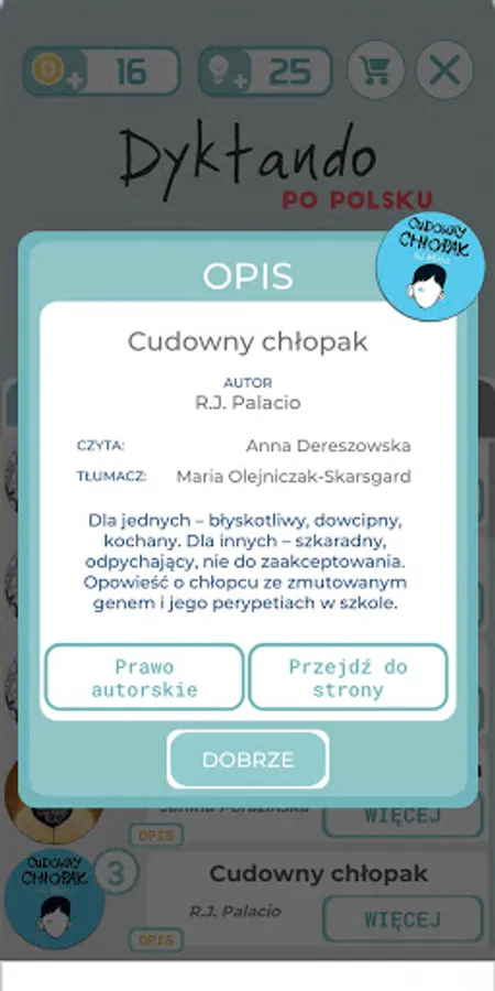 Dictation in Polish is an application thanks to which you will learn the basics of Polish grammar in a friendly and easy way. Listen to audio recordings from well-known and liked books and rewrite without mistakes!