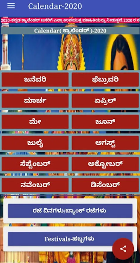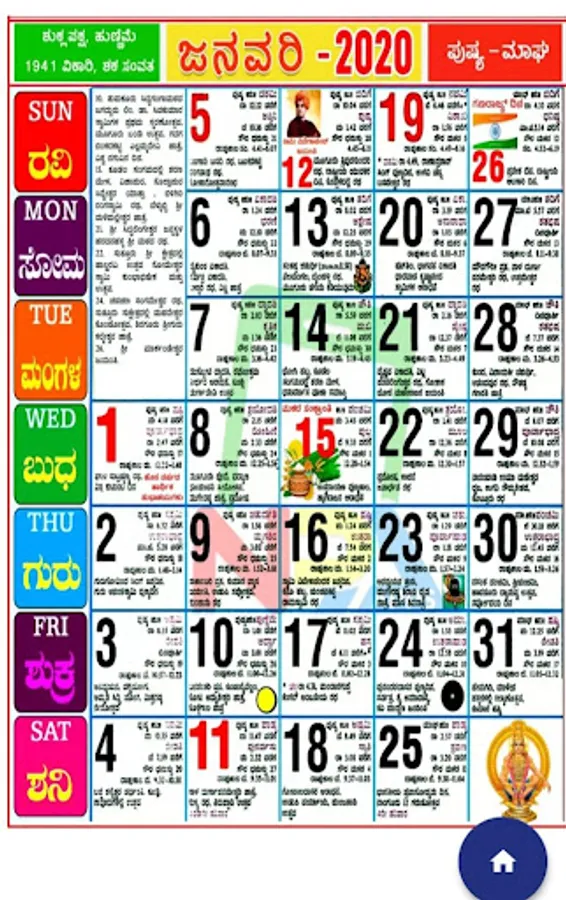 Kannada Calendar & Panchanga is the very first app that provides both calendar image view and date wise panchanga like day to day panchanga for year 2020. This Kannada Calendar 2020 has complete details like Dina Veekshane,Tingala Veekshane,Tithi,Nakshatra in Kannada language.