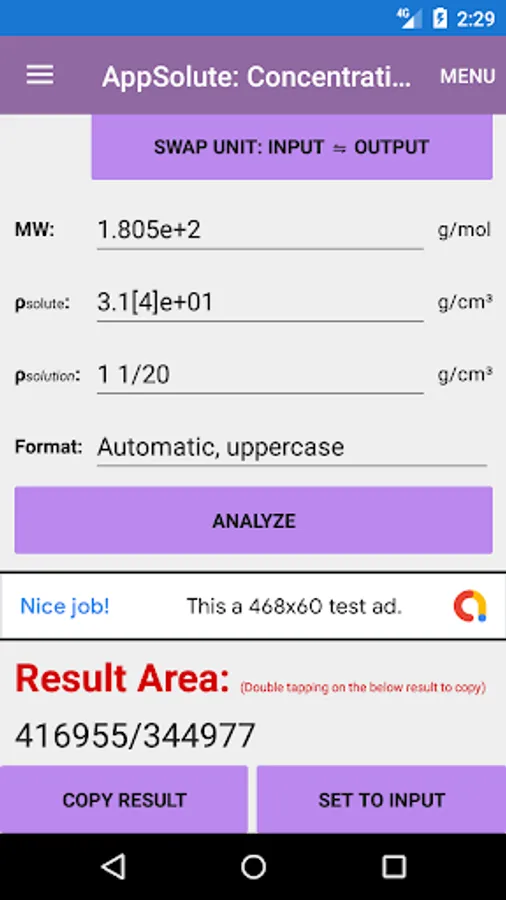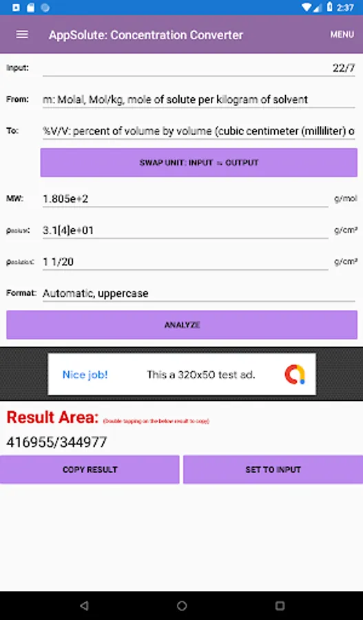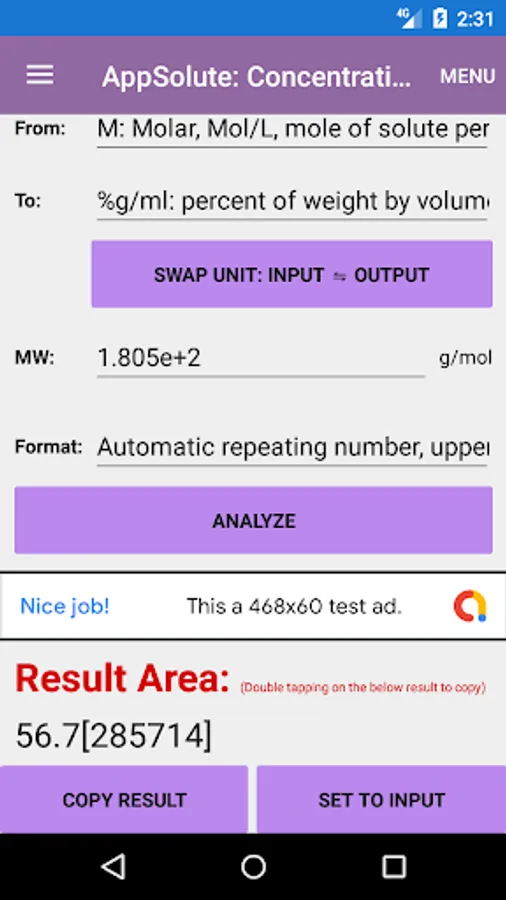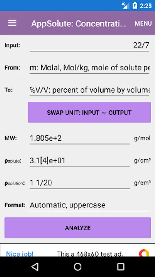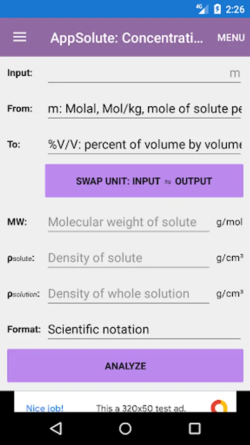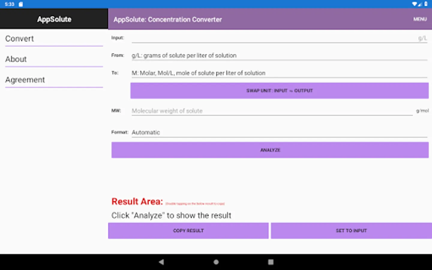 AppSolute (Lite) is the concentration unit converter. It can convert 5 units,
