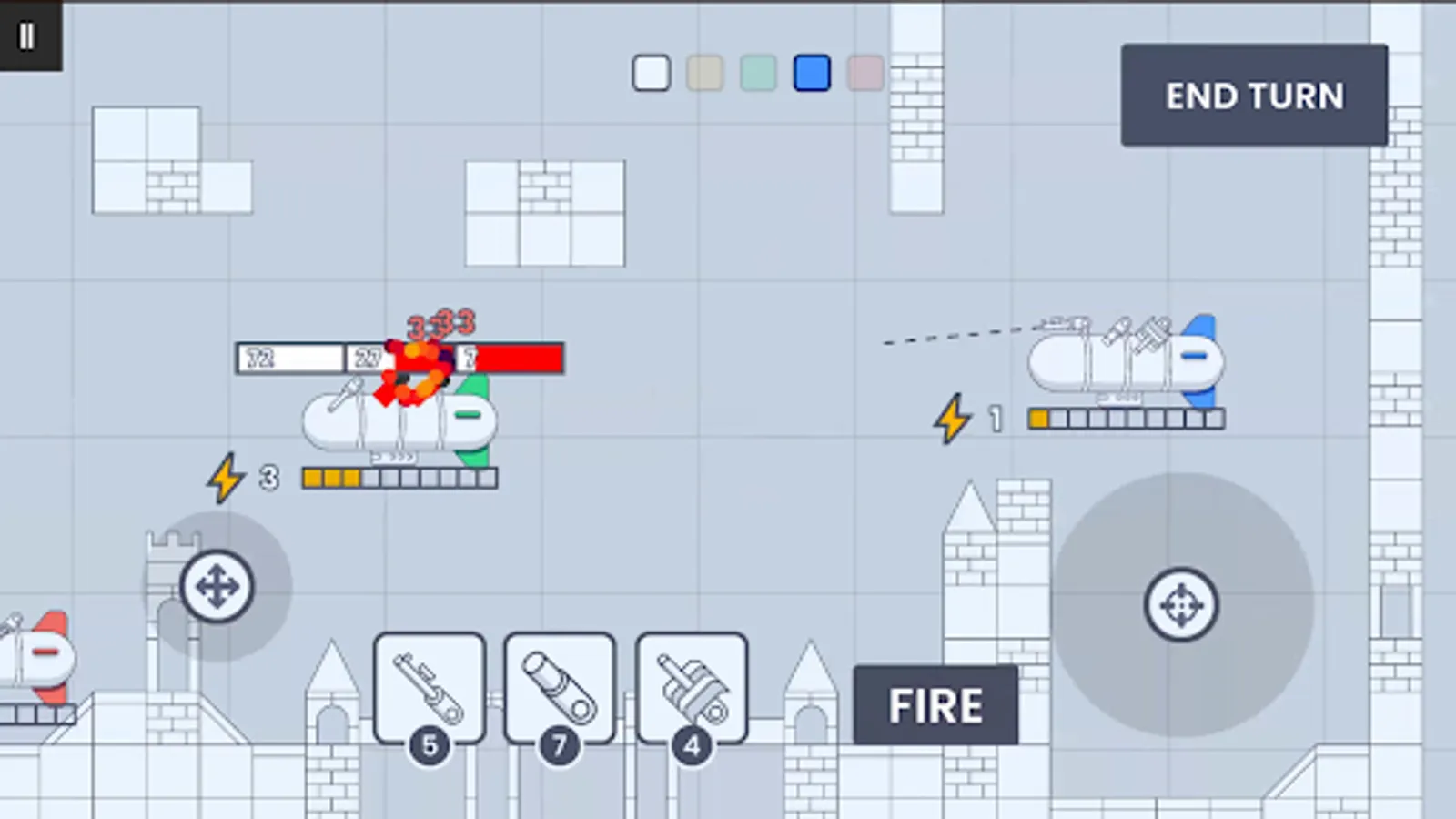 Unlike traditional 4-player tank games that many are familiar with, BLIMP introduces a refreshing twist. In those old games, whenever a tank shoots, the player's turn ends immediately, leaving no room for strategic waiting, hit-and-run tactics, or building up for powerful attacks. BLIMP addresses all of these issues while ensuring the game remains intuitive and easy to pick up.