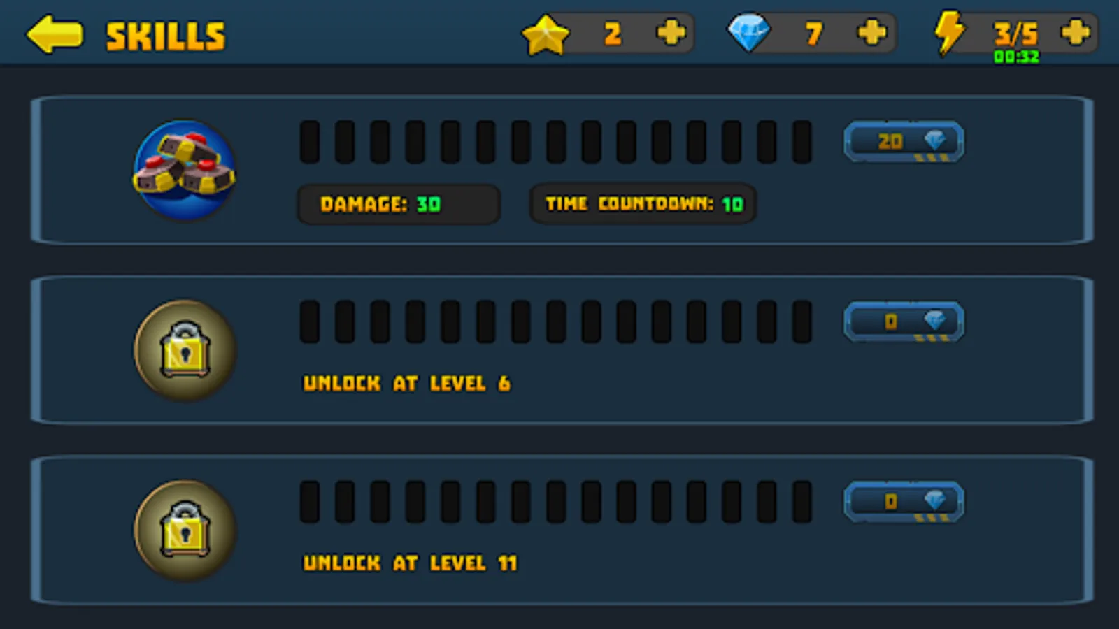 - Diversity upgrade systems (health, damage, range, critical...);