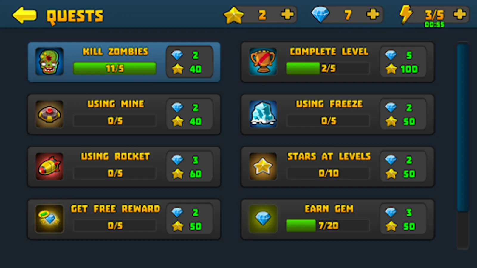- There are a lot of quests to earn more stars and gems;