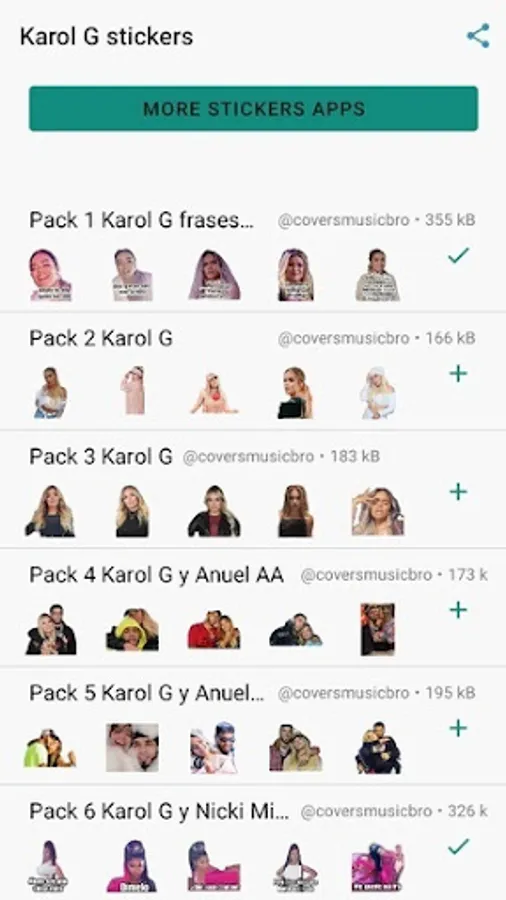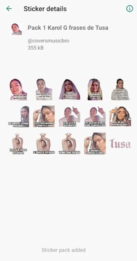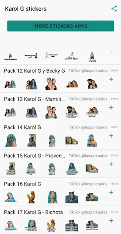 The application has Stickers (Stickers) of Karol G, some without phrases and others with phrases. The Stickers can be downloaded to be able to use them. The application will be continuously updated so that you have new Stickers.