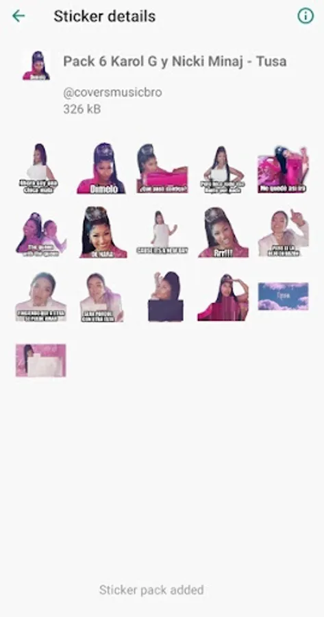 In addition, the phrases that appear on Karol G's stickers are some of them from the song Tusa that she sings with Nicki Minaj. Nicki Minaj Stickers also appear. In addition, phrases that are not from songs appear. It also contains stickers with phrases from the songs Mamiii, Provence and Bichota. The stickers that contain phrases from the Mamiii song appear Becky G, that is, they contain Karol G and Becky G stickers.