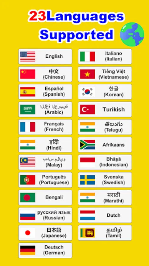 23 supported languages